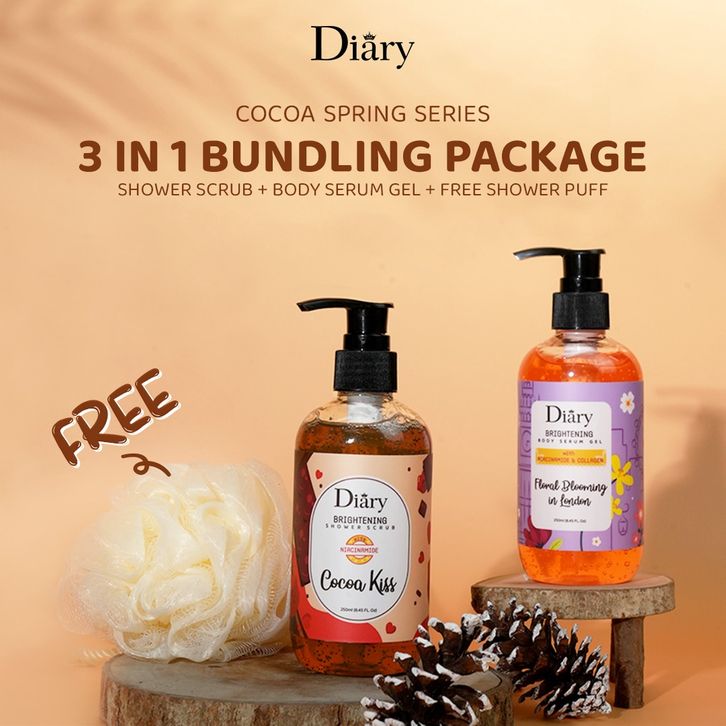 BUY 1 GET 1 CLEAR STOKDiary Cocoa Floral Series / Paket Shower scrub & Body serum gel / Sabun mandi