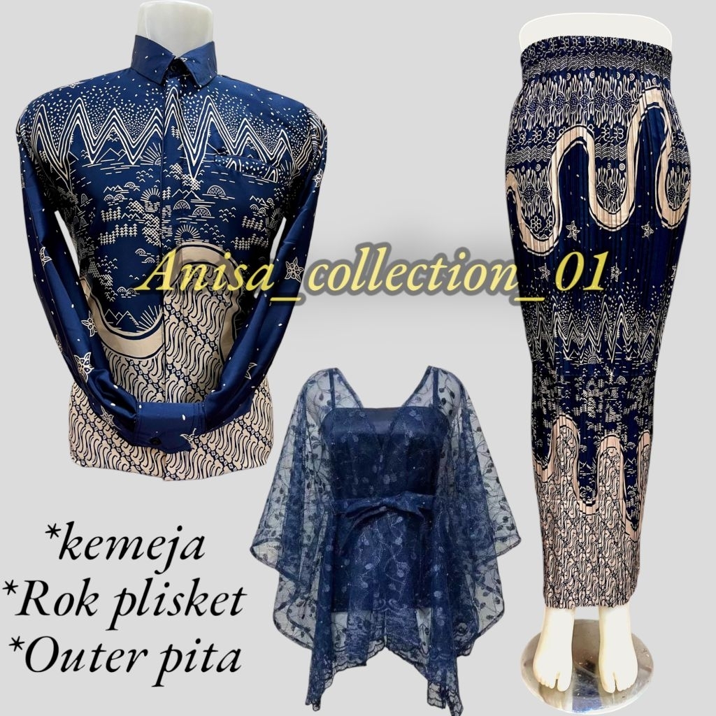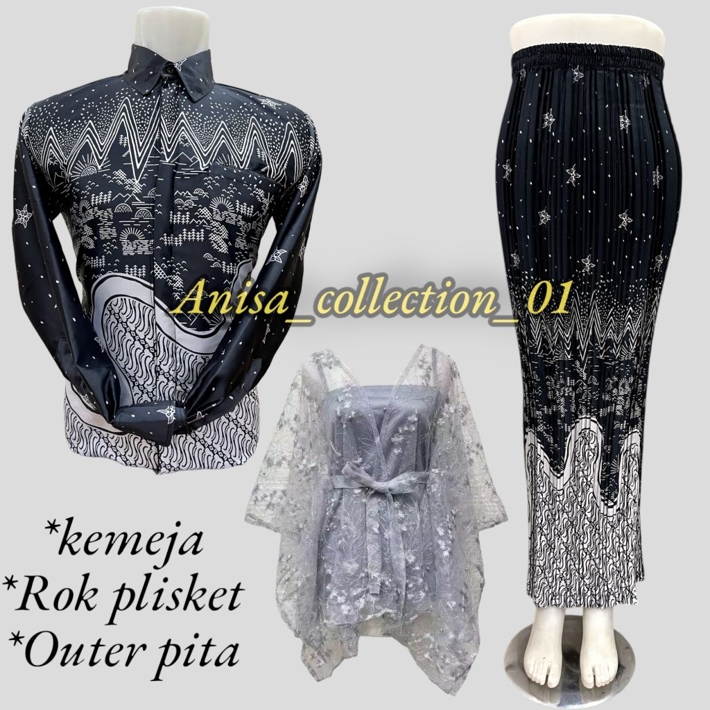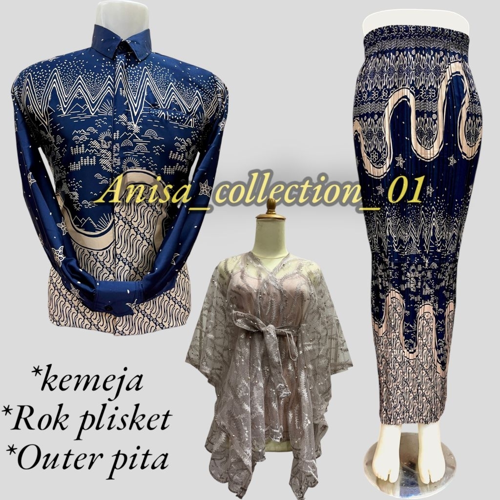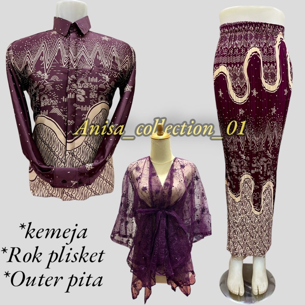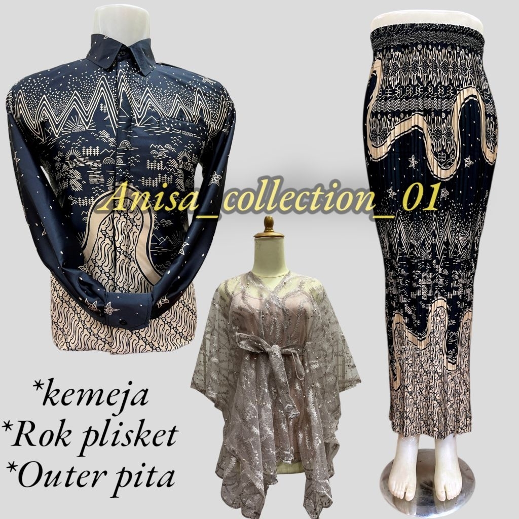 SET COUPLE KEMEJA BATIK ROK PLISKET / COUPLE BATIK / KEMEJA BATIK COUPLE ROK / COUPLE KEMEJA PLISKET DAN OUTER PITA KONDANGAN COUPLE PASANGAN