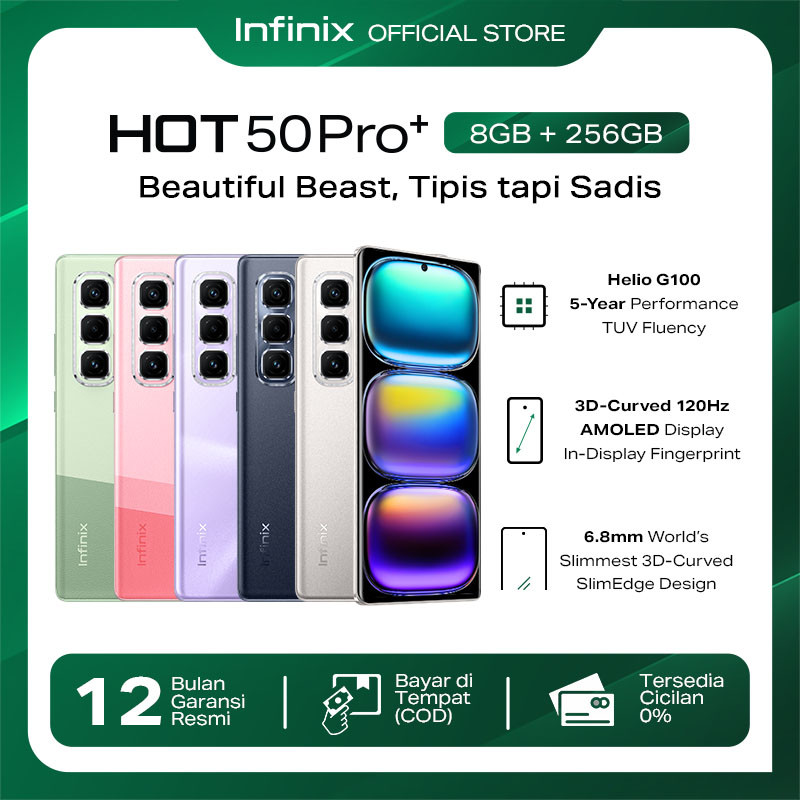 𝐏𝐑𝐎𝐌𝐎 Infinix Hot 50 Pro+ 8/256GB - Up to 16GB Extended RAM - Helio G100 - 6.78 inch 3D Curved 120Hz Amoled