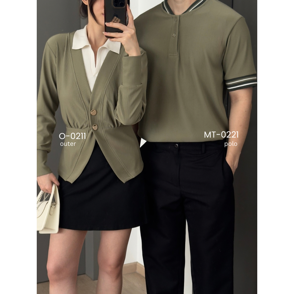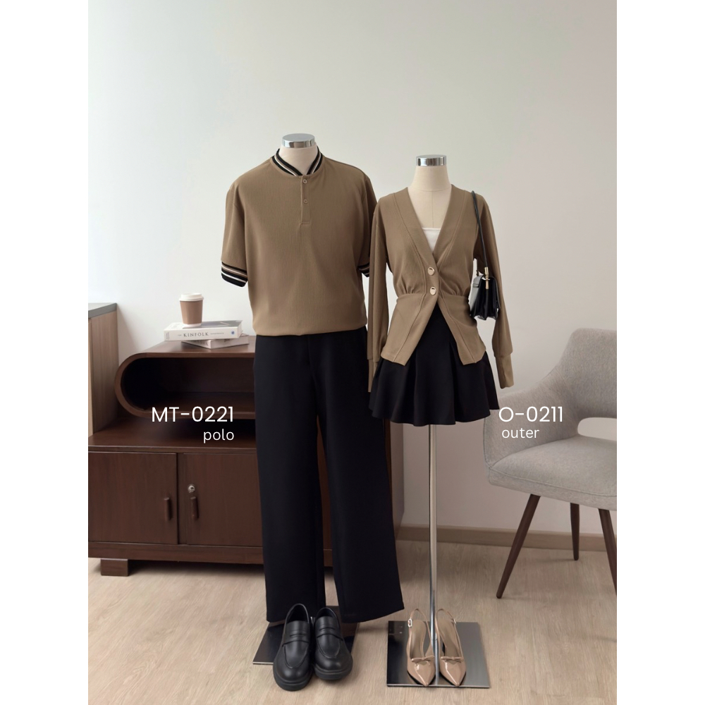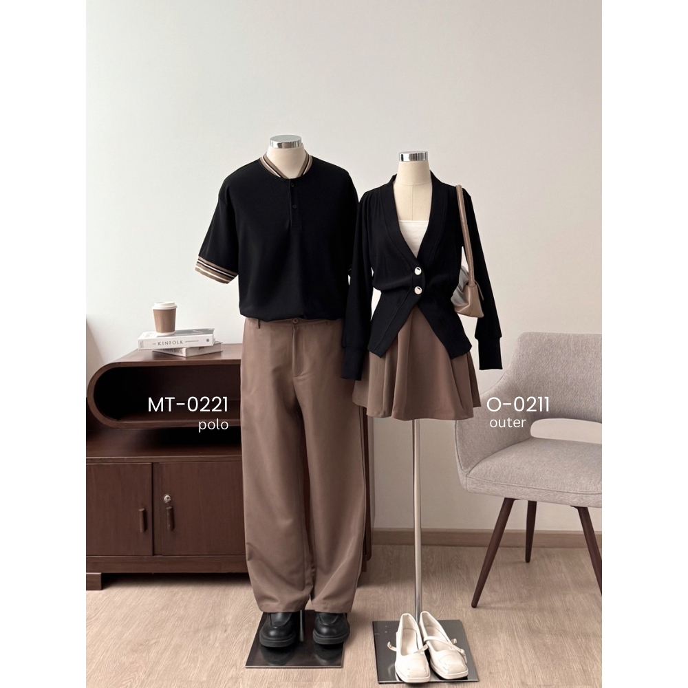 Kadaka Couple Group Family Outfit | Knit Cardigan Top and Polo Shirt | Pleated Pairs Collection 3.0