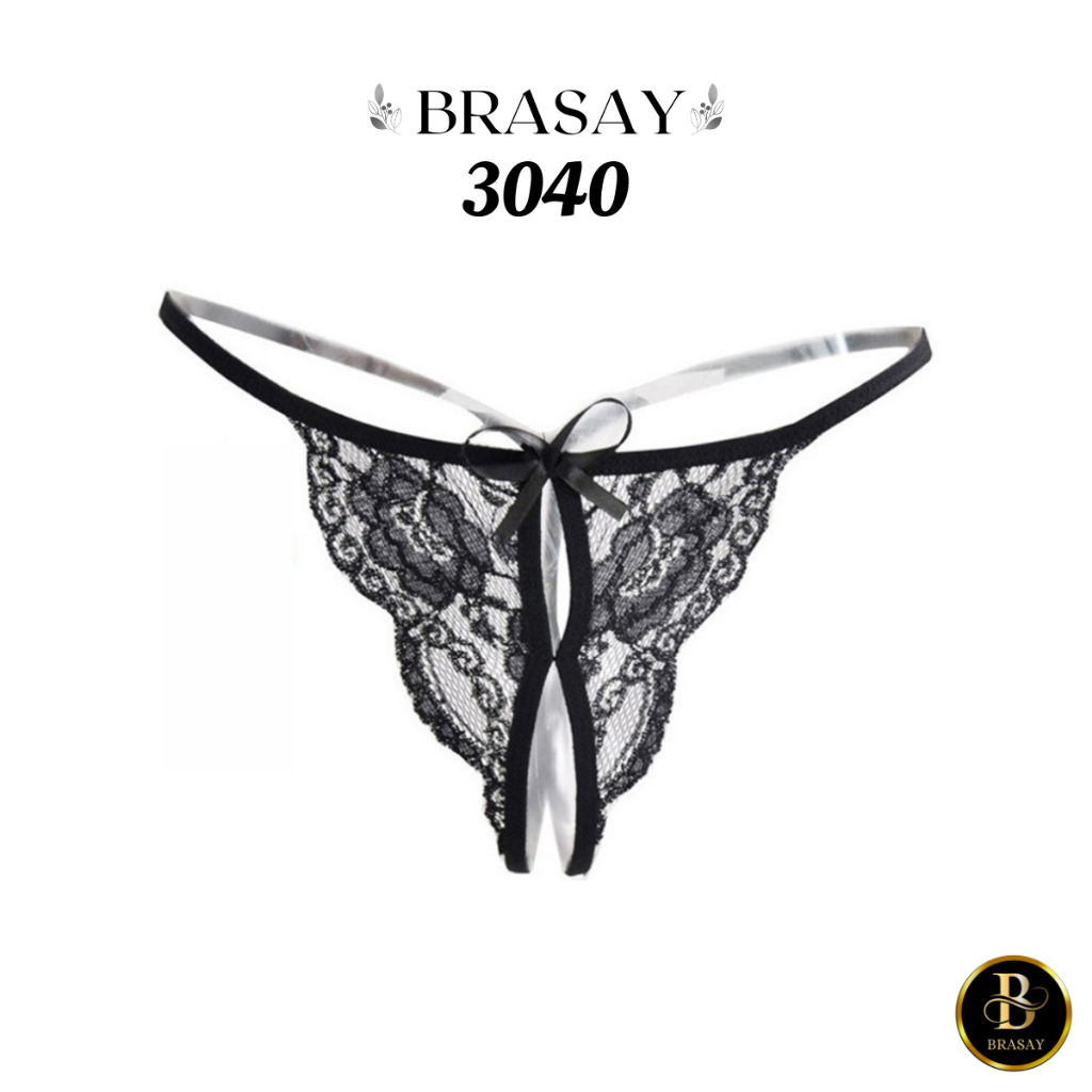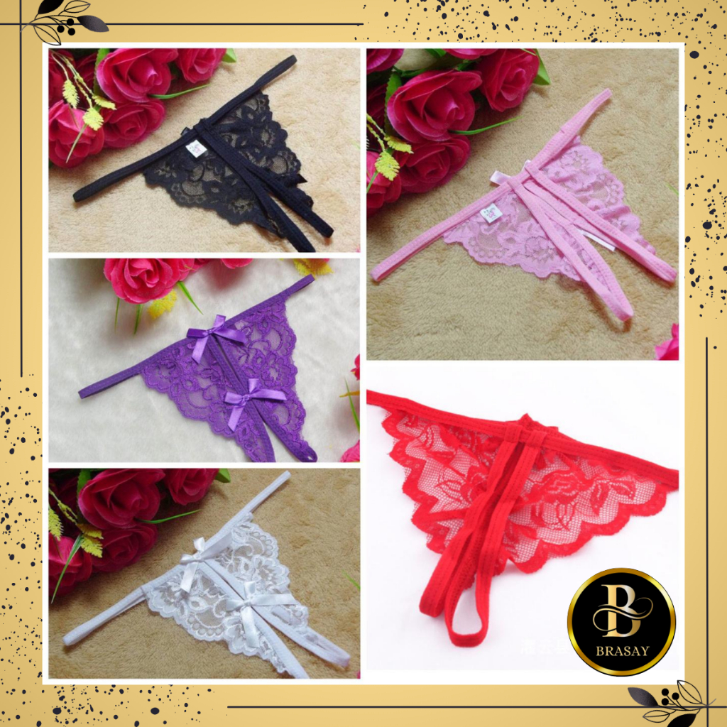 Brasay G-String Wanita Lace Transparan Open Celana Dalam Panties 3040