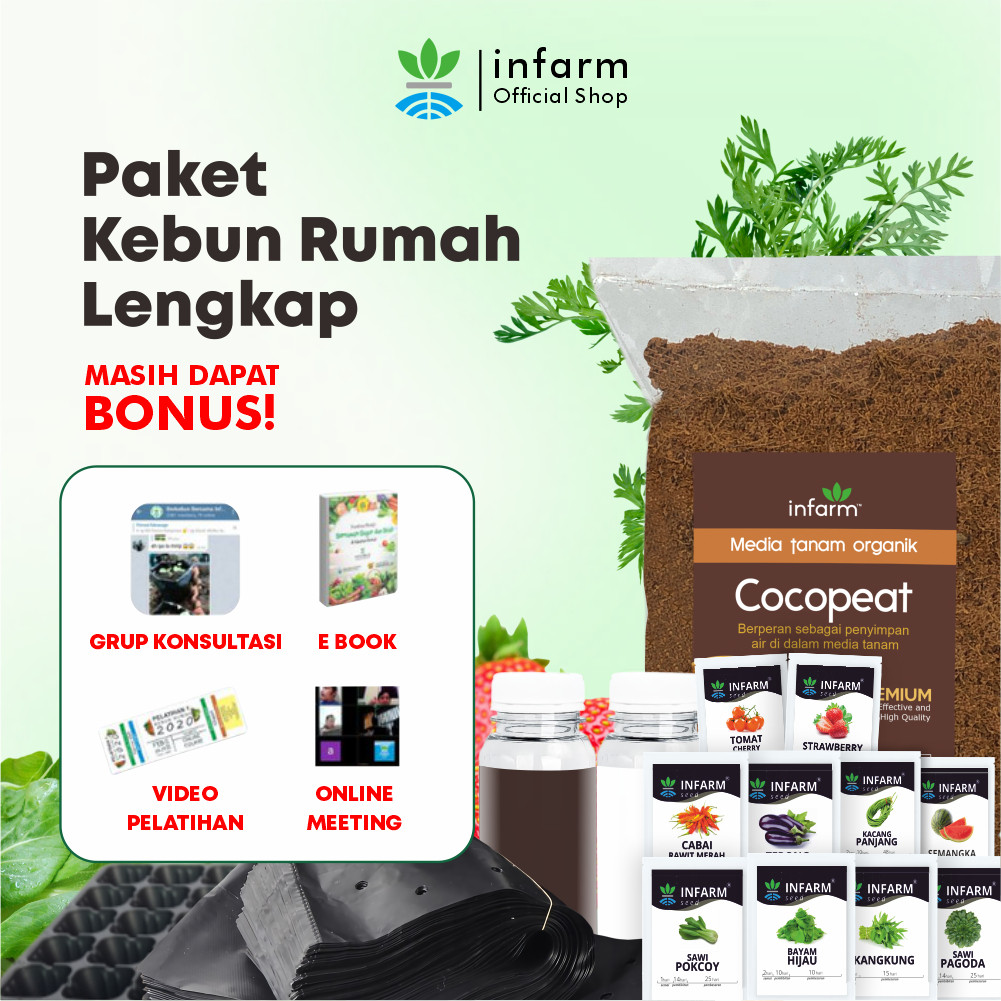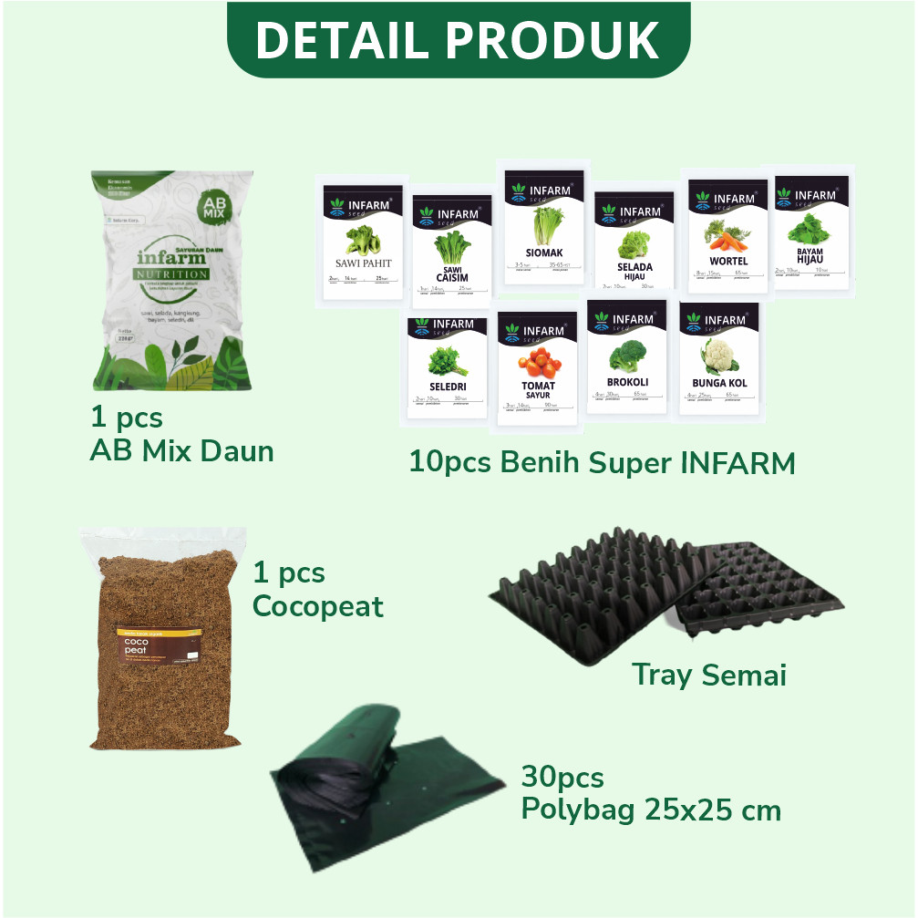 [Star] INFARM - Paket Kebun Rumah Lengkap 10 Benih Sayuran Cocopeat Tray Nutrisi AB Mix Peralatan Berkebun