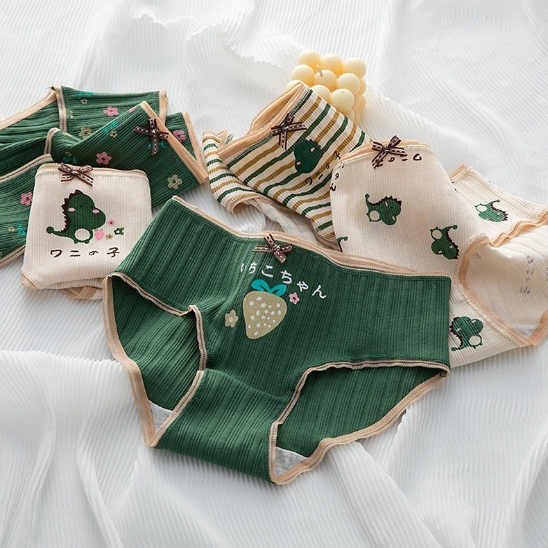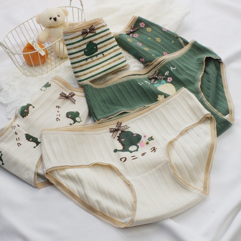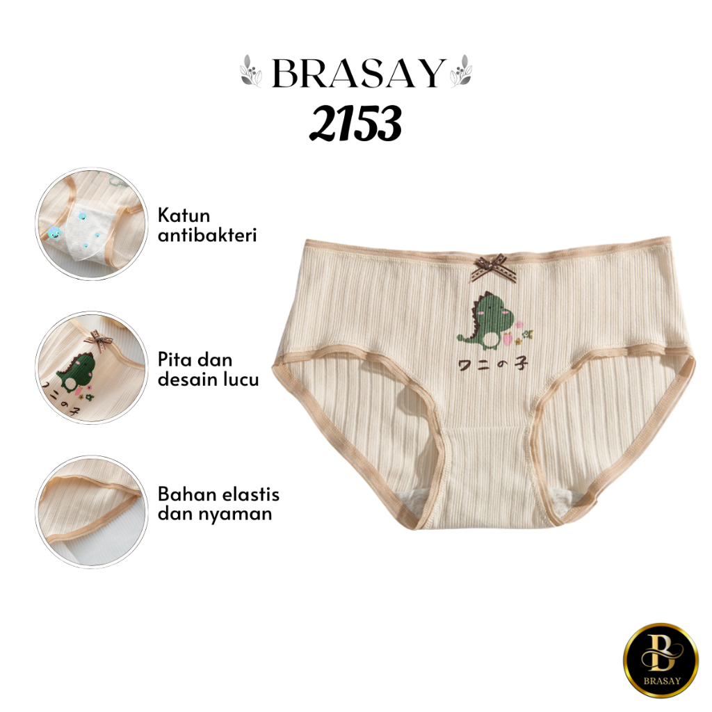 Brasay Celana Dalam Wanita Mid Waist Motif Dino Pakaian Dalam Bahan Katun 2153