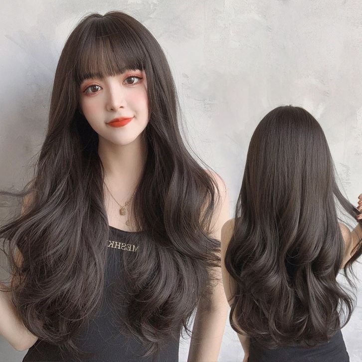 TERLAKU Wig rambut panjang curly,Wig bergelombang poni panjang 70 cm untuk wanita dengan gelombang besar alami
