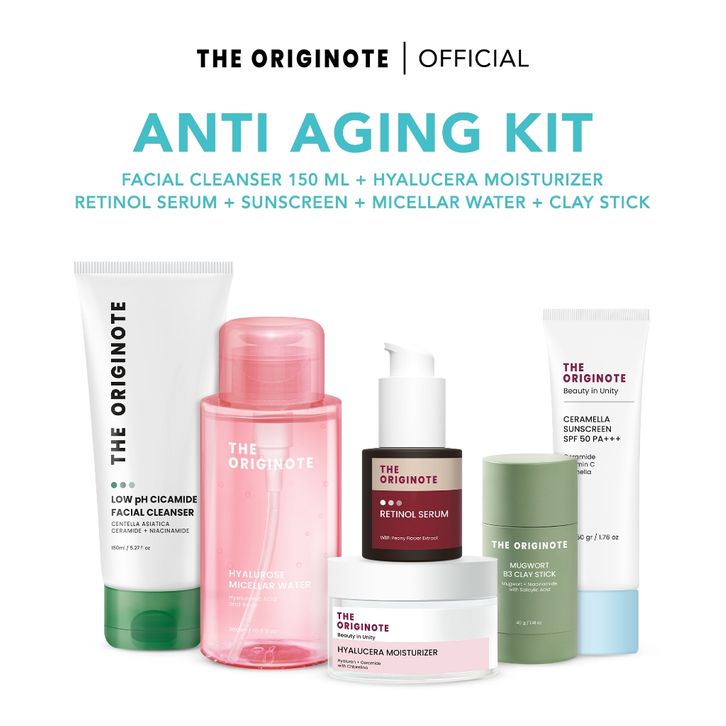 Special Bundle 6in1 The Originote Paket Skincare Micellar Water Facial Cleanser Serum Moisturizer Sunscreen Clay Stick