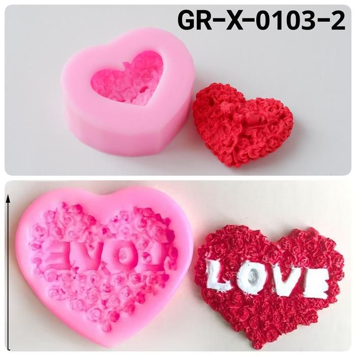X-0103-2 Cetakan silikon coklat fondant pudding lilin sabun hati bunga - X