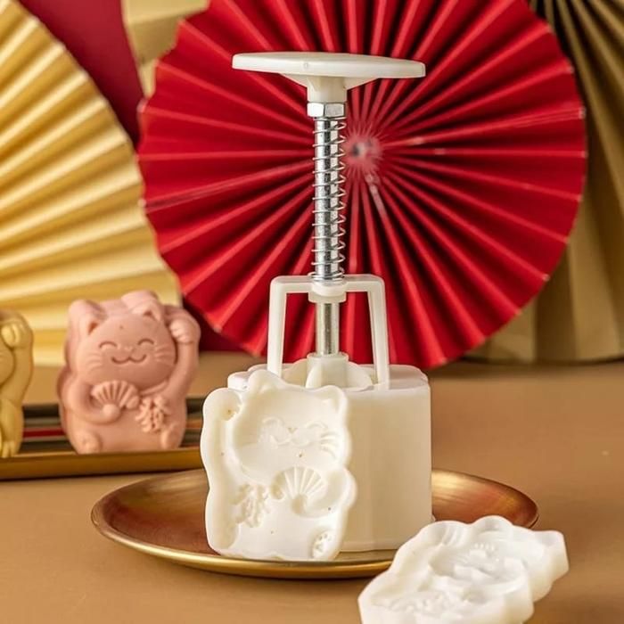 Cetakan Kue Bulan Kucing Maneki Neko Lucky Cat Mooncake Mold 75 g