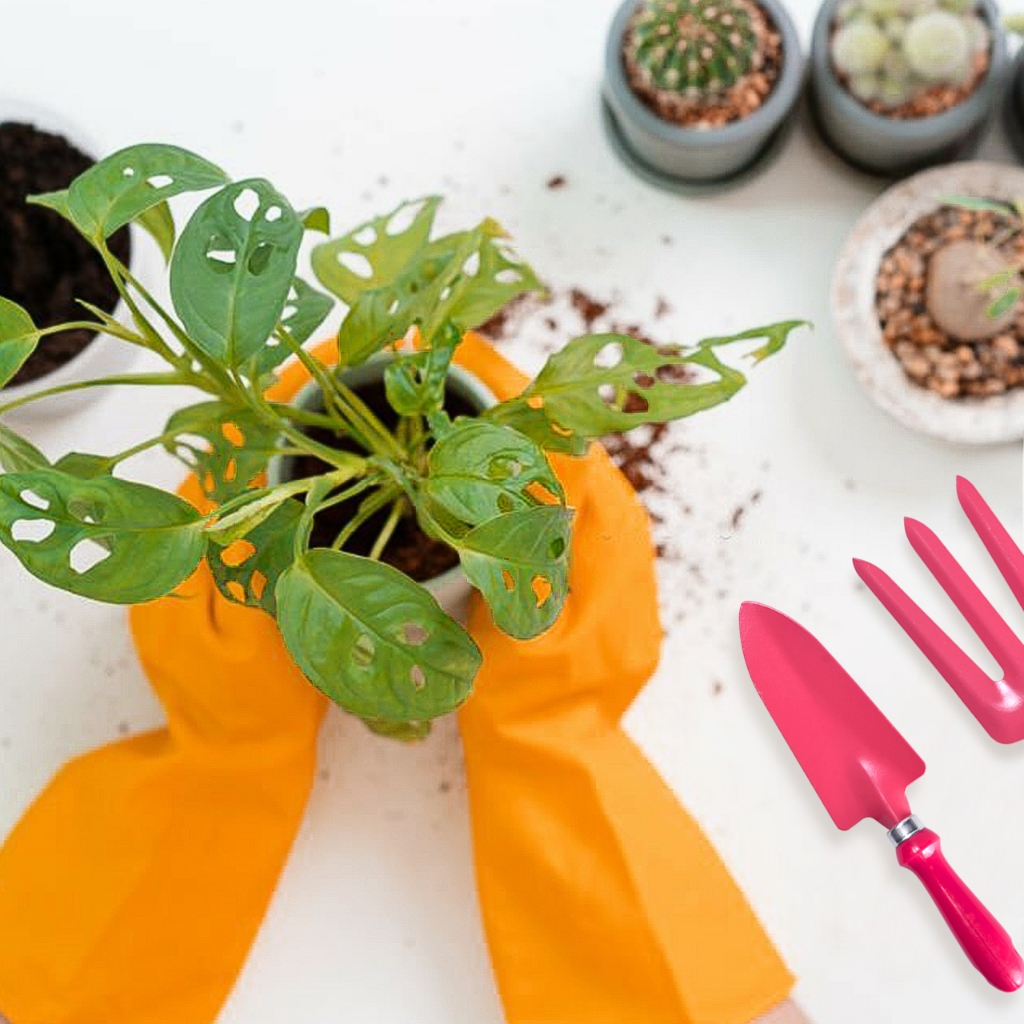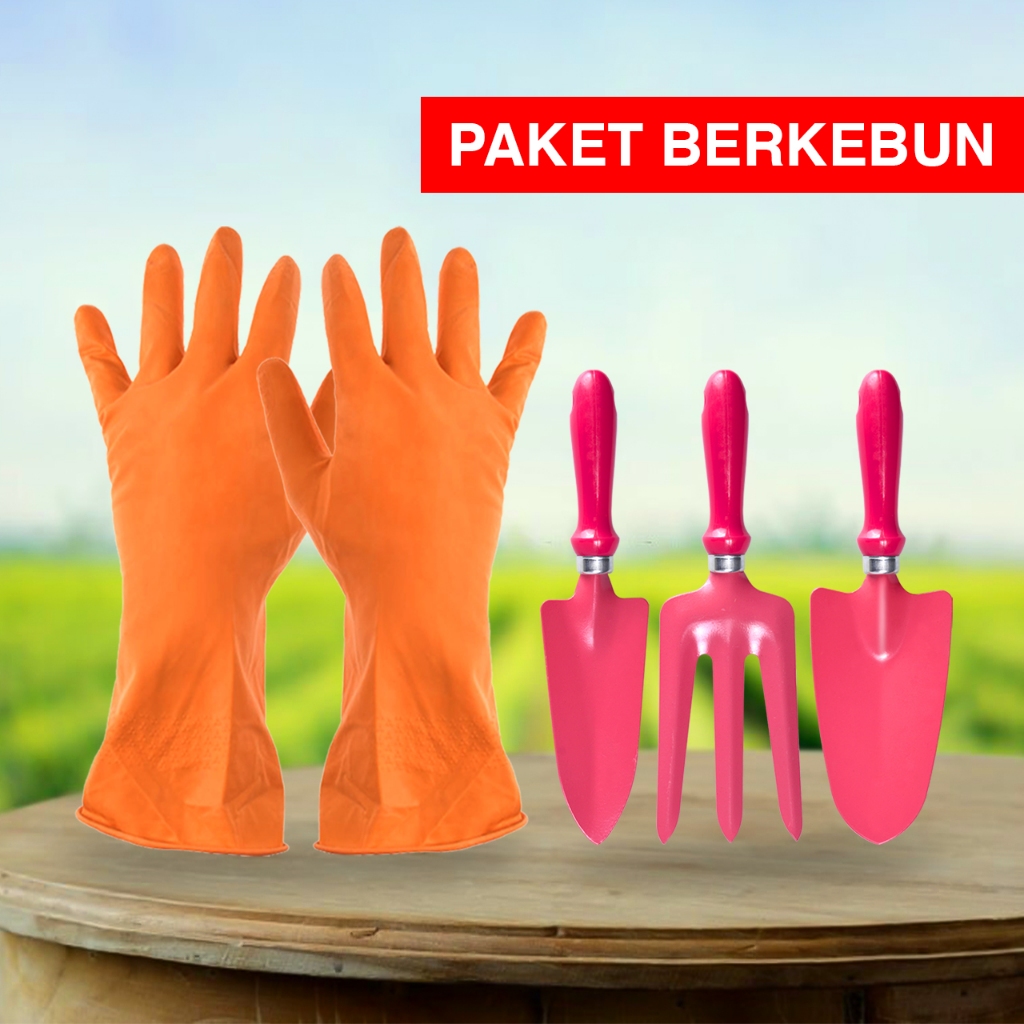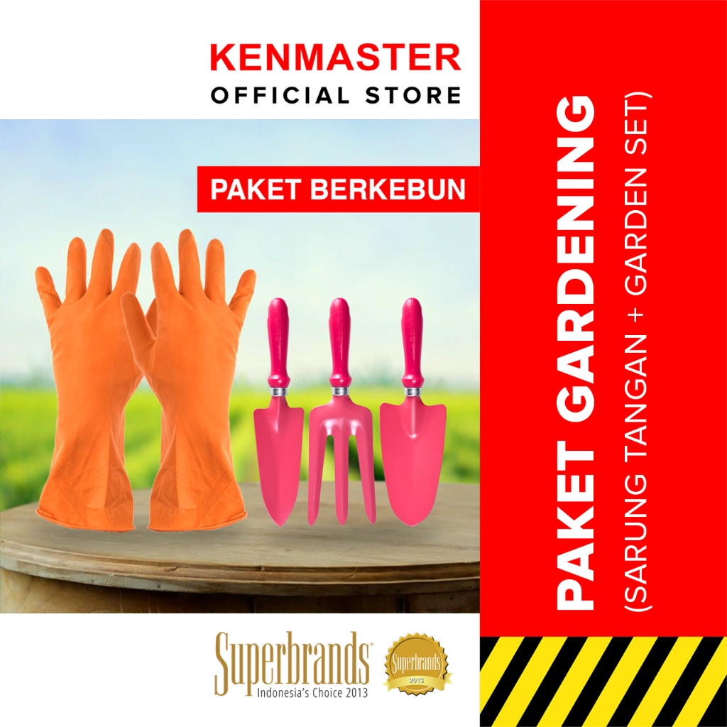 [Star] Kenmaster Paket Berkebun - Sarung Tangan Karet Orange L + Garden Tools 3 Pcs - BUND-0224