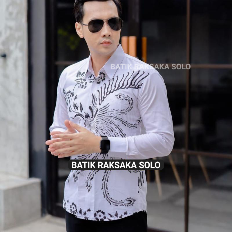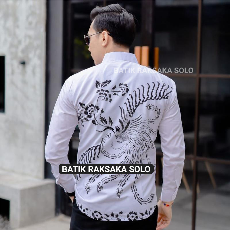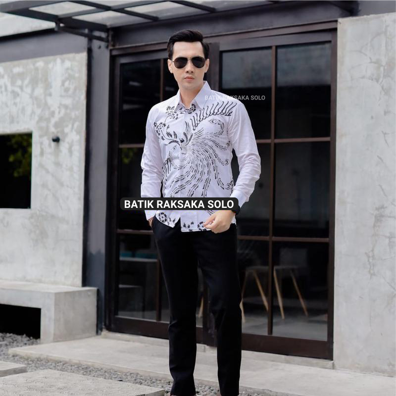 Kemeja Batik Pria Cowok Slimfit Premium Motif ARJUNA Full Furing Baju Lengan Panjang Warna Putih
