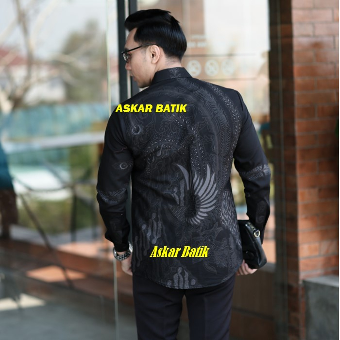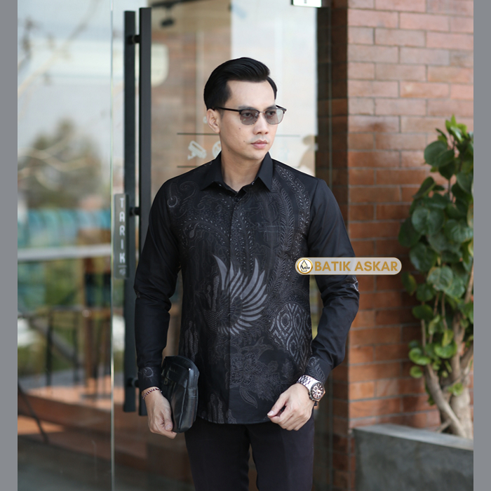 Askar Batik Motif Dewandaru Baju Kemeja Batik Pria Slim Fit Lengan Panjang Bahan Katun Lasem Premium Heem Warna Hitam