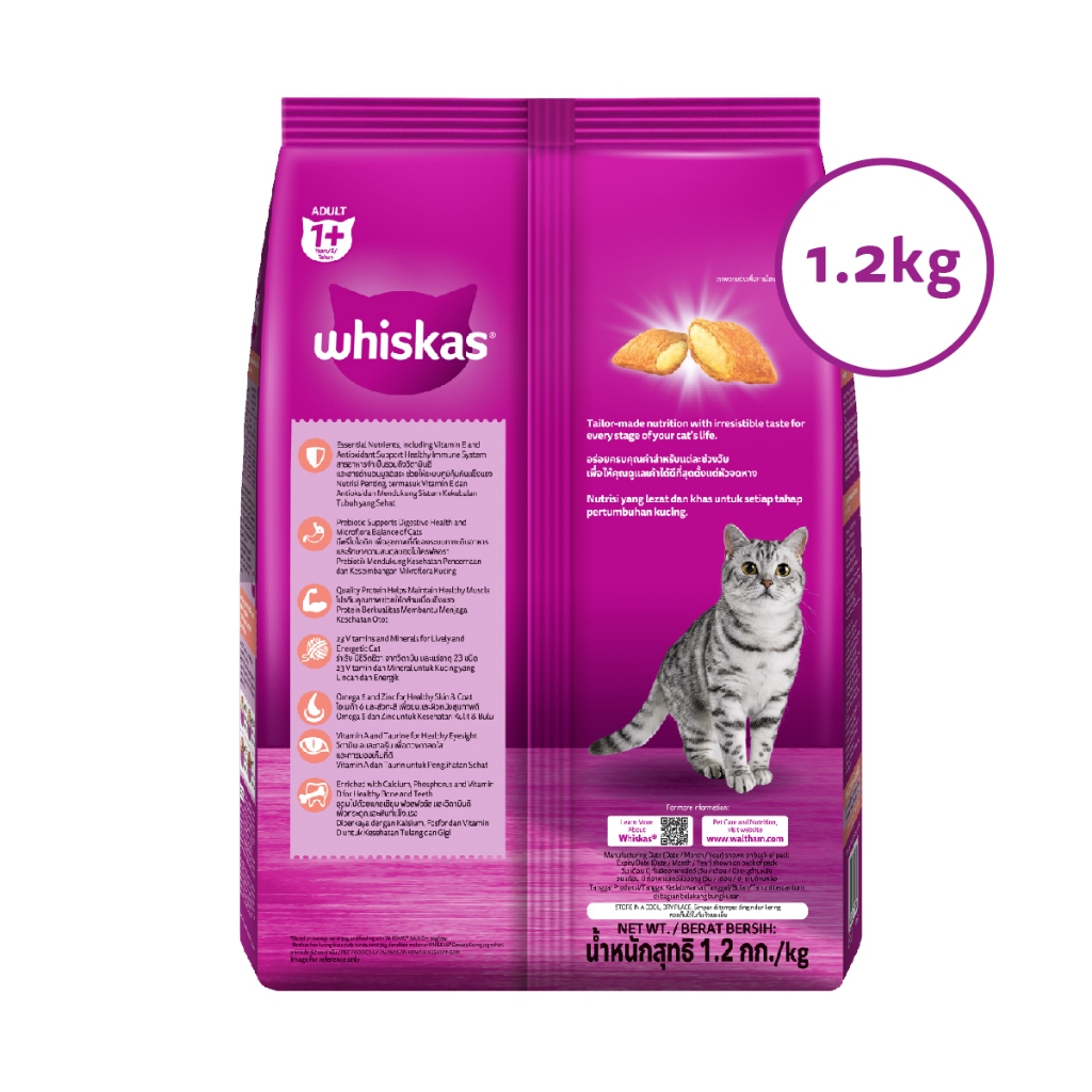 WHISKAS Makanan Kering untuk Kucing Dewasa Pilih Rasa 1.2kg 2 Pack FREE Temptations 30gr