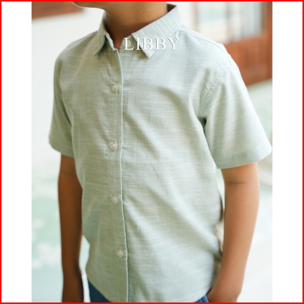 Libby Kemeja Anak Laki-laki Polos Katun Ethan Shirt Usia 9bln-14th 1pcs Kemeja Lengan Pendek Katun Polos Anak Baju Anak
