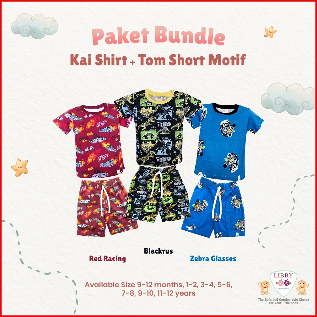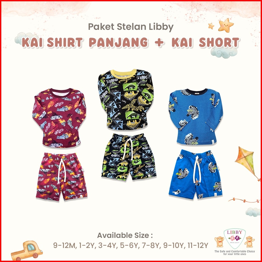Libby Setelan Anak Laki Laki Kaos Anak Laki Laki Celana Pendek Katun Anak Laki Laki Usia 9 Bulan - 12 Tahun 1 Set 2 Item