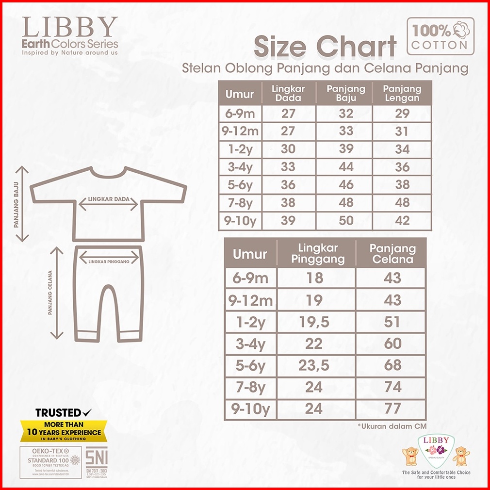 Libby Earth Colour Fave Set 4 Setelan Oblong Panjang Celana Panjang 1pcs Pack