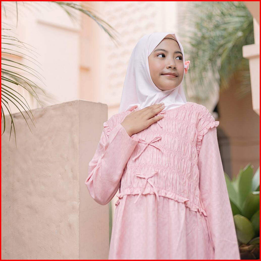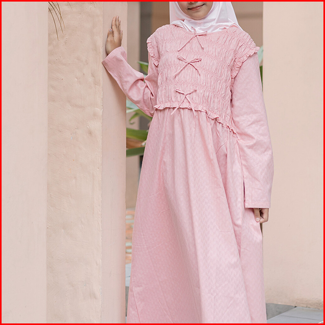 Shirt Dress Maxi Cotton Ghamis Dress Katun Anak Rodeo Junior Girl Pink Blush