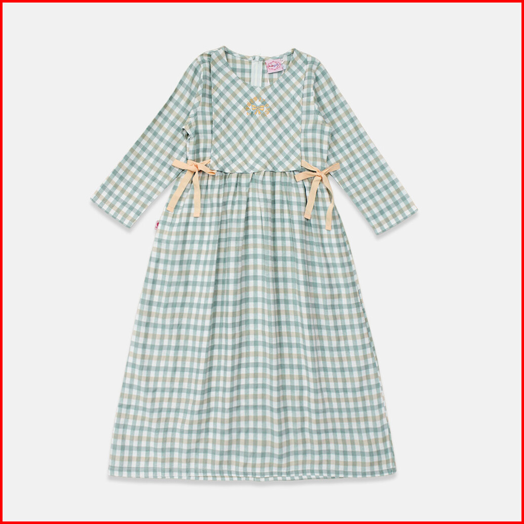 Shirt Dress Maxi Cotton Ghamis Dress Katun Anak Green Kotak Rodeo Junior Girl Festive