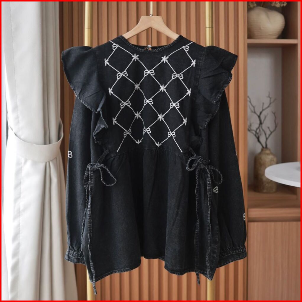 Denim Blouse Ruffle Coquette