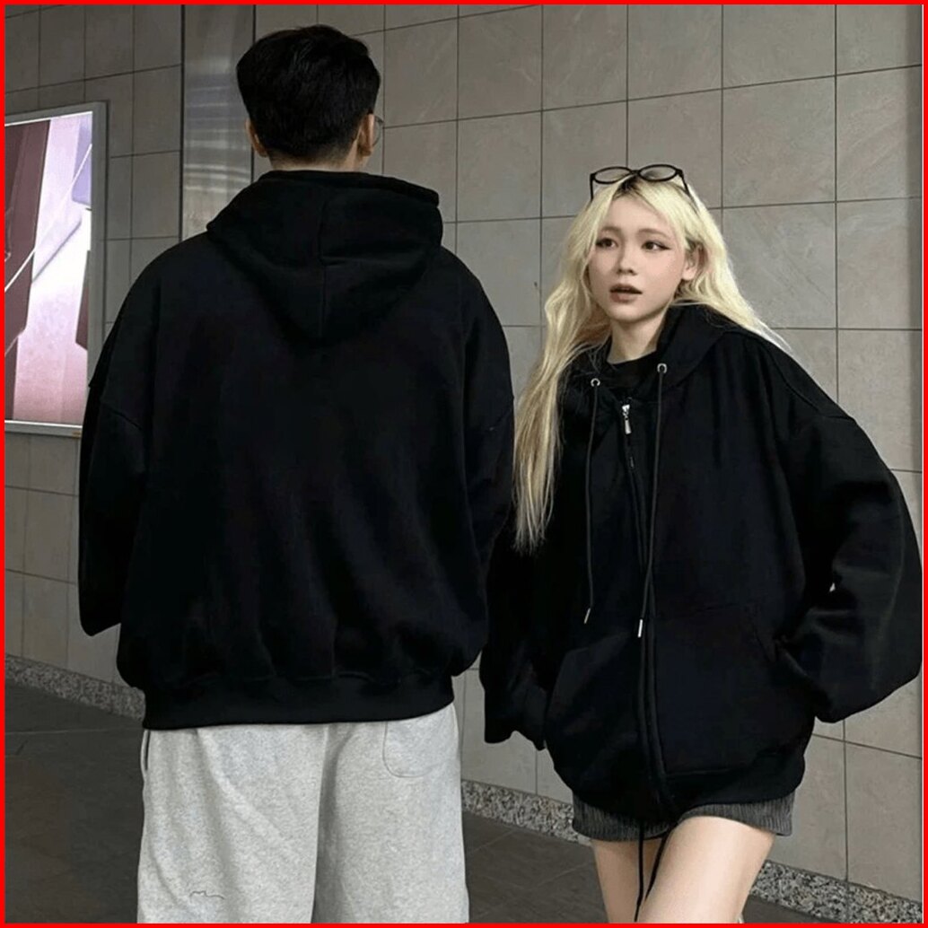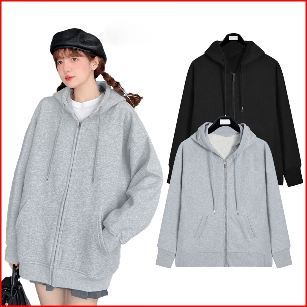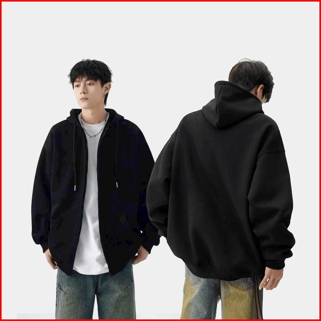 Prs Jaket Zipper Hoodie Bahan Fleece Tebal Premium Polos Oversize Bigsize Boxy Pelajar Keren Unisex