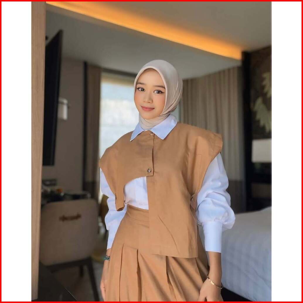 Leeana- One Set Wanita Terbaru Vest Rok Bahan Linen Rami
