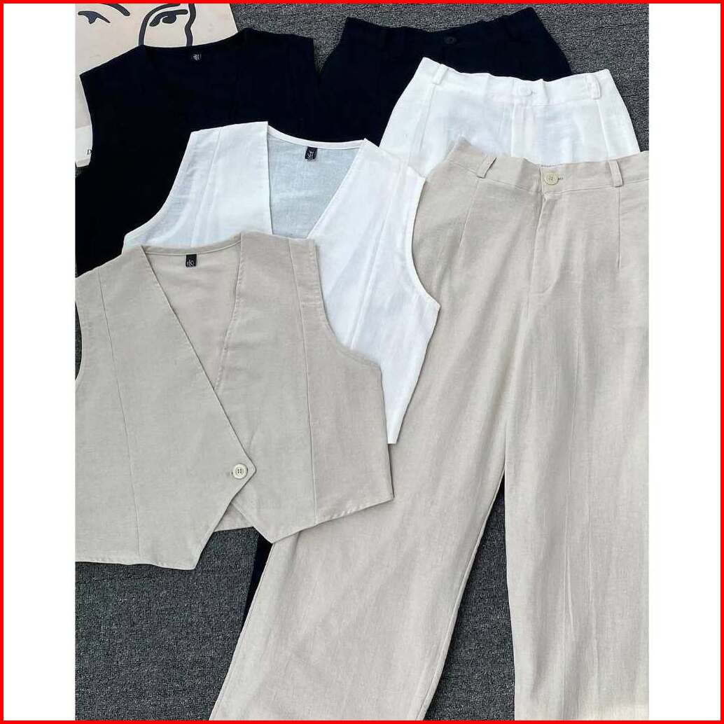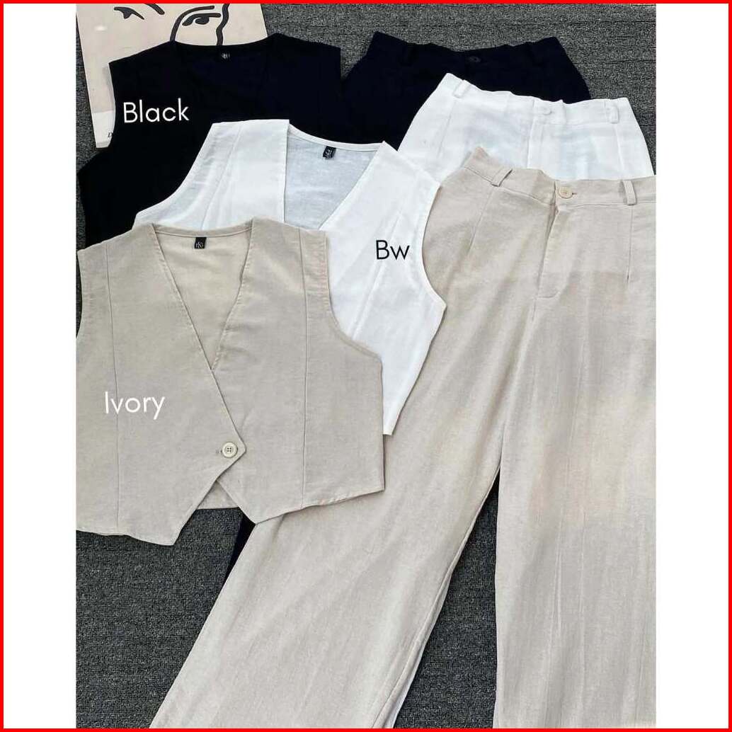 Bianca-one Set Wanita Terbaru Vest Pants Linen Angel
