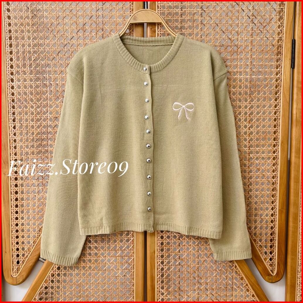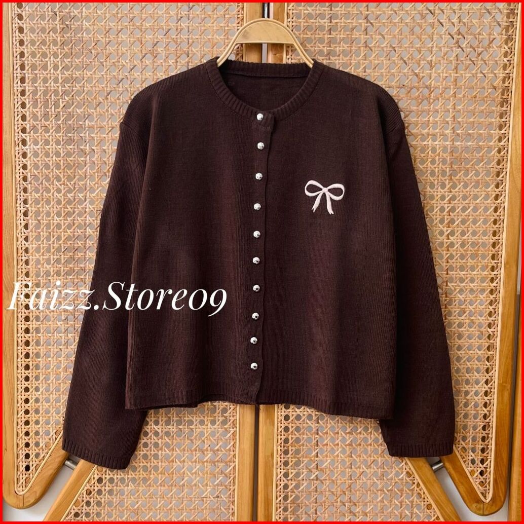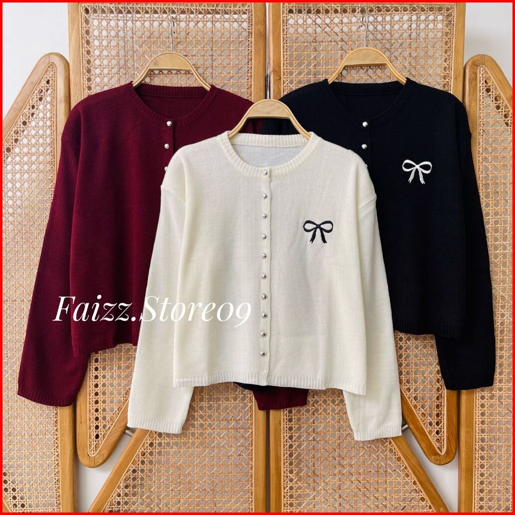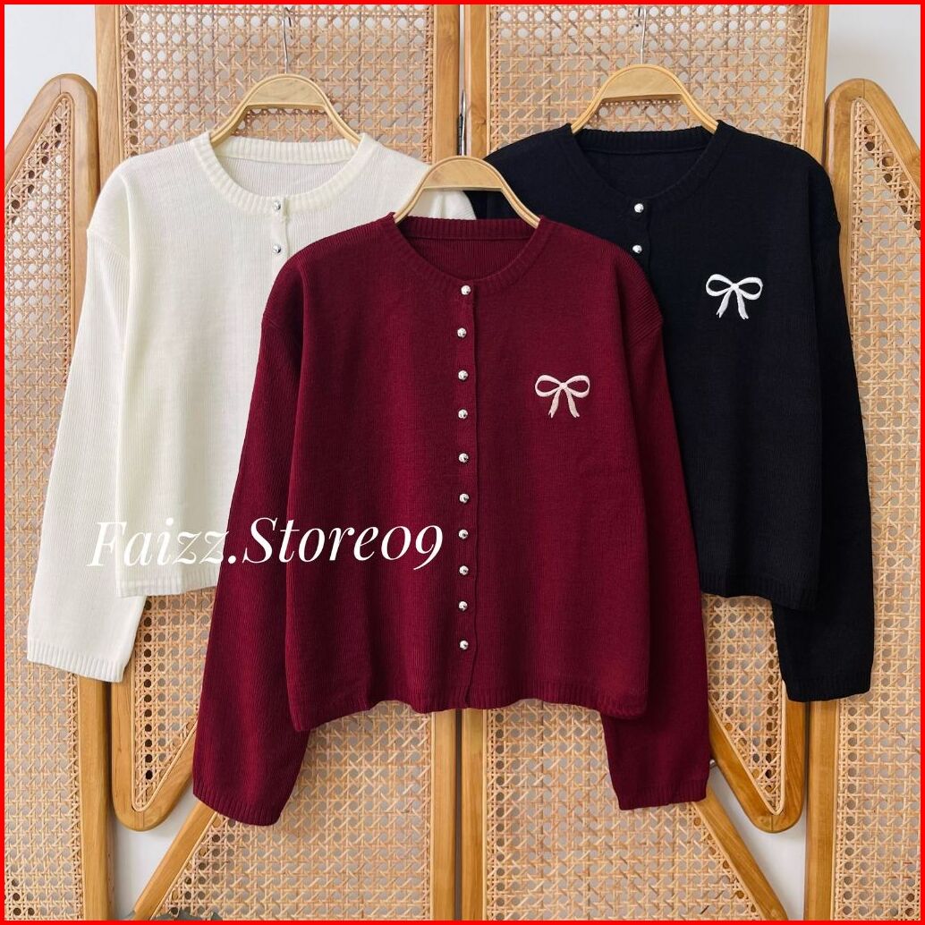 Imelda Cardy Knit - Atasan Cardigan Rajut Kancing Motif Pita Simple Bahan Lembut Korean Style