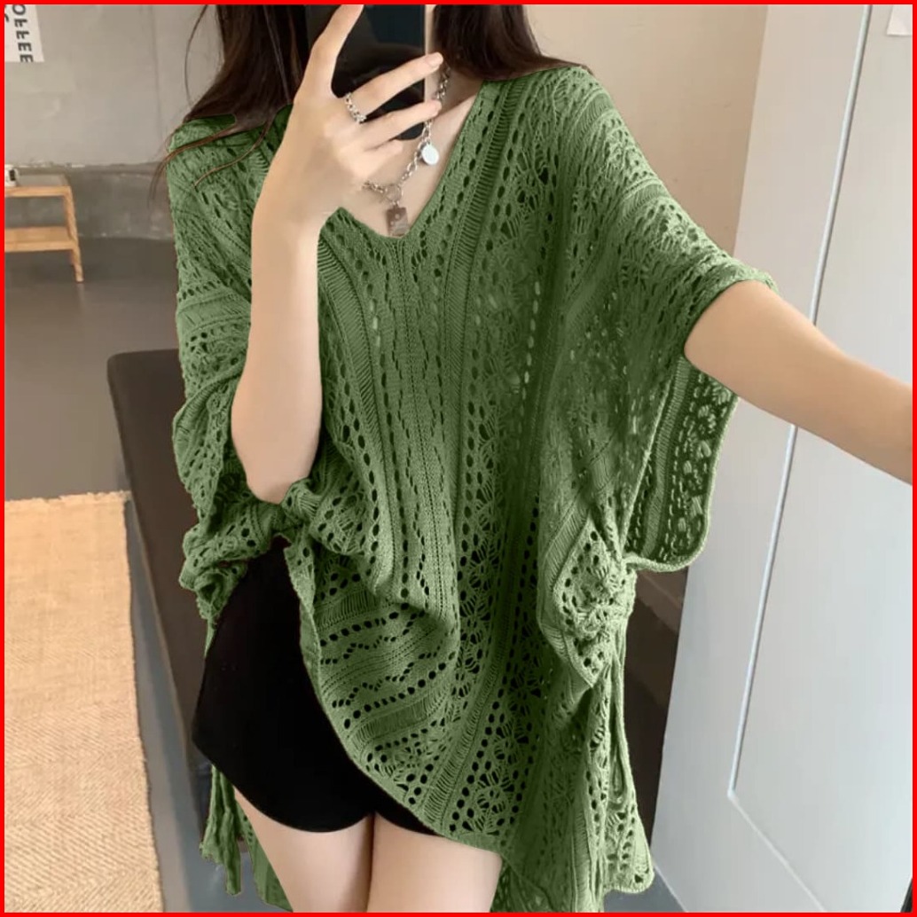 Emiola Hollow Blouse Out Loose Knit Top - Atasan Wanita Premium