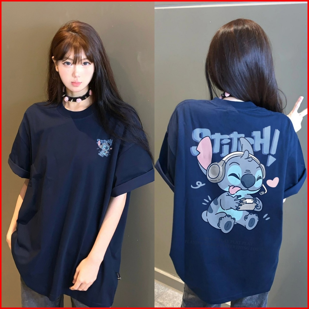 Forteid Biru Laut T-shirt Lengan Pendek Baju Kaos Oversize Wanita Baju Kaus Wanita Korea Baju Atasan Wanita Terbaru Pola