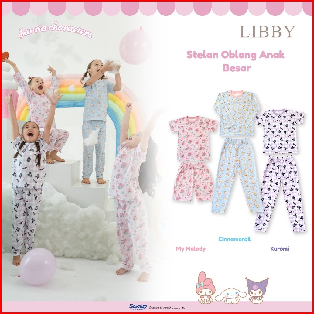 Libby Sanrio Setelan Piyama Oblong Anak Besar Perempuan Kuromi Cinnamoroll My Melody Size 4thn - 12 Thn 1 Stel Seri 2 Pi