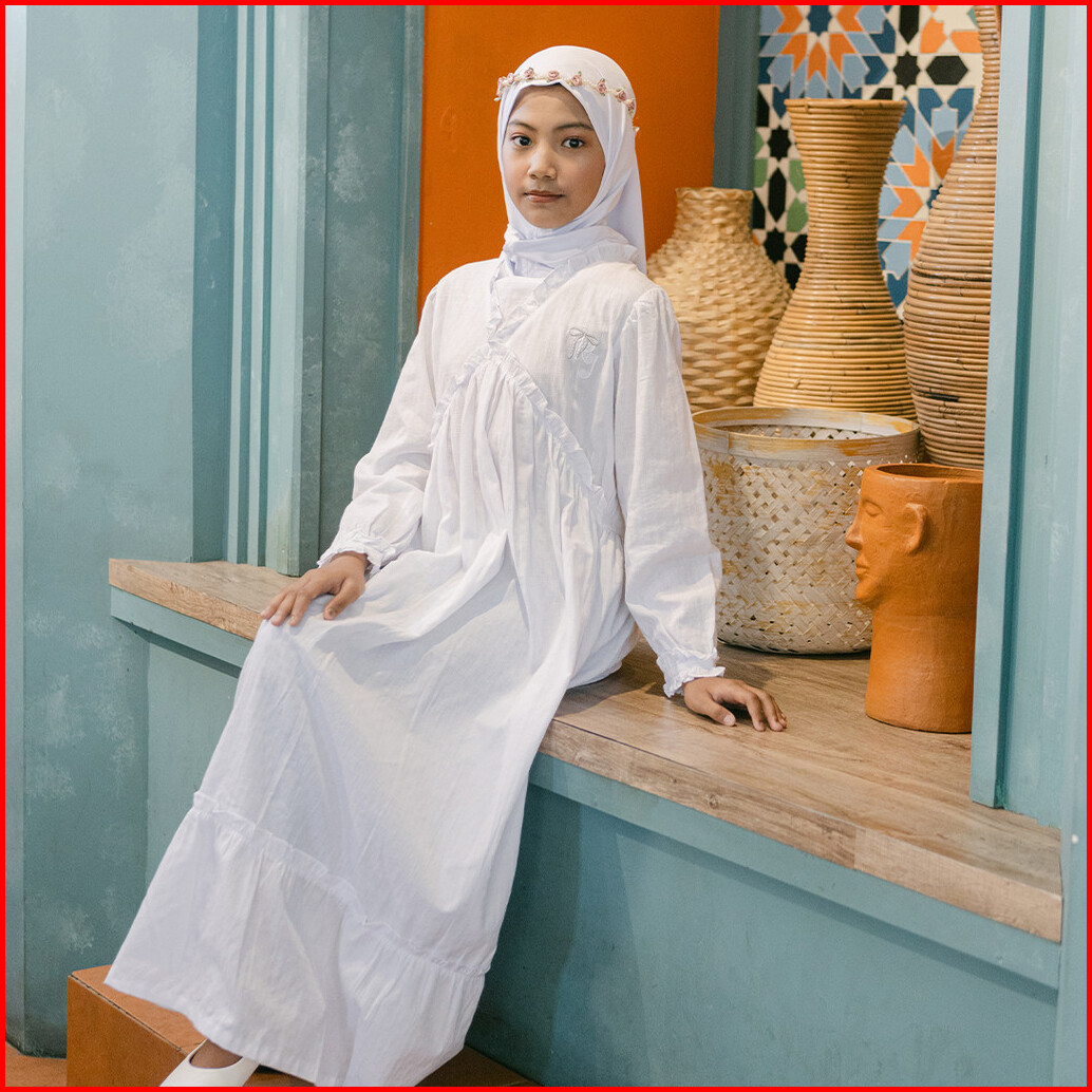 Shirt Dress Maxi Cotton Ghamis Dress Katun Rodeo Junior Girl Nature Tones