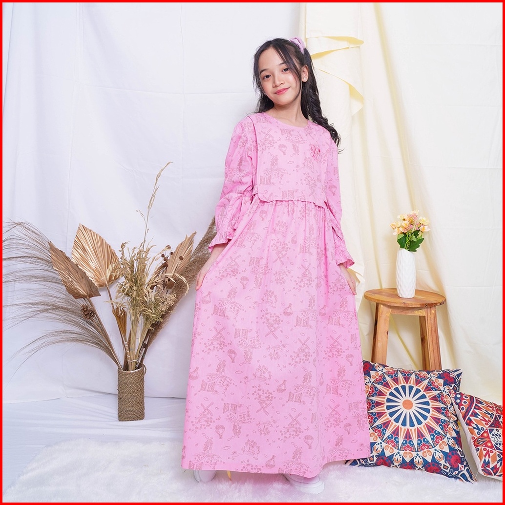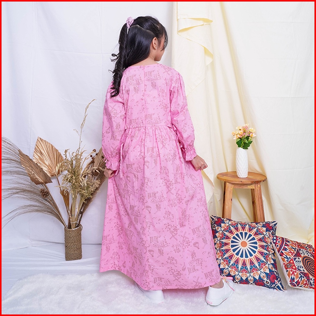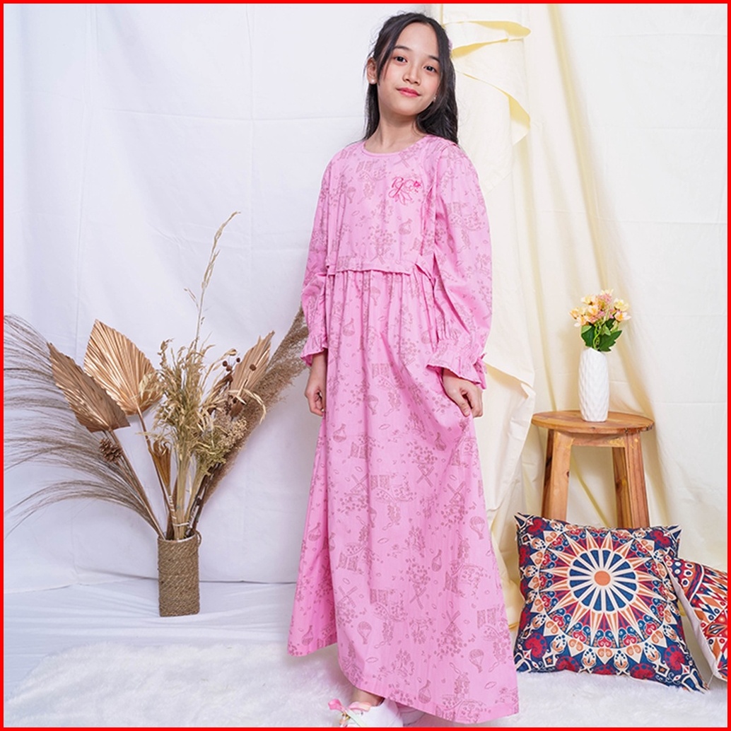 Maxi Poplin Dress Ghamis Anak Perempuan Pink Rodeo Junior Girl Sunny Garden
