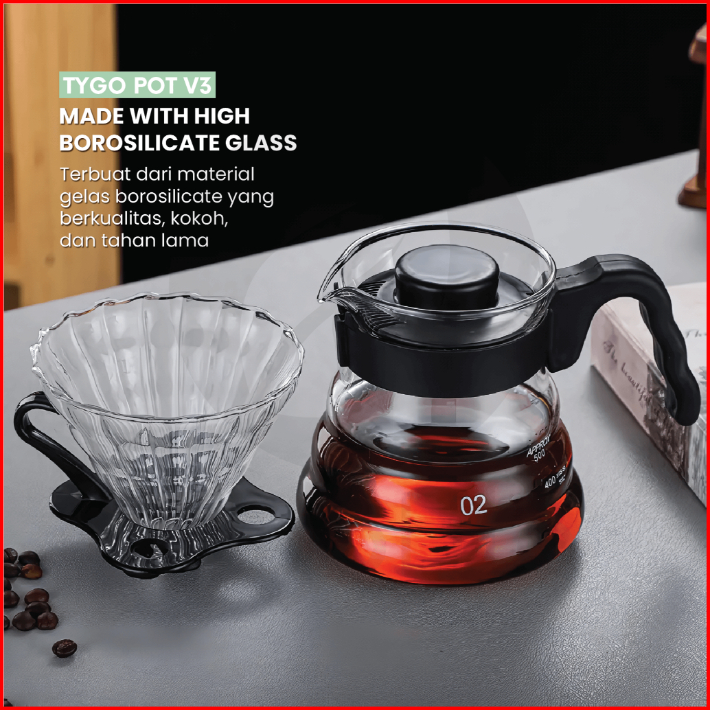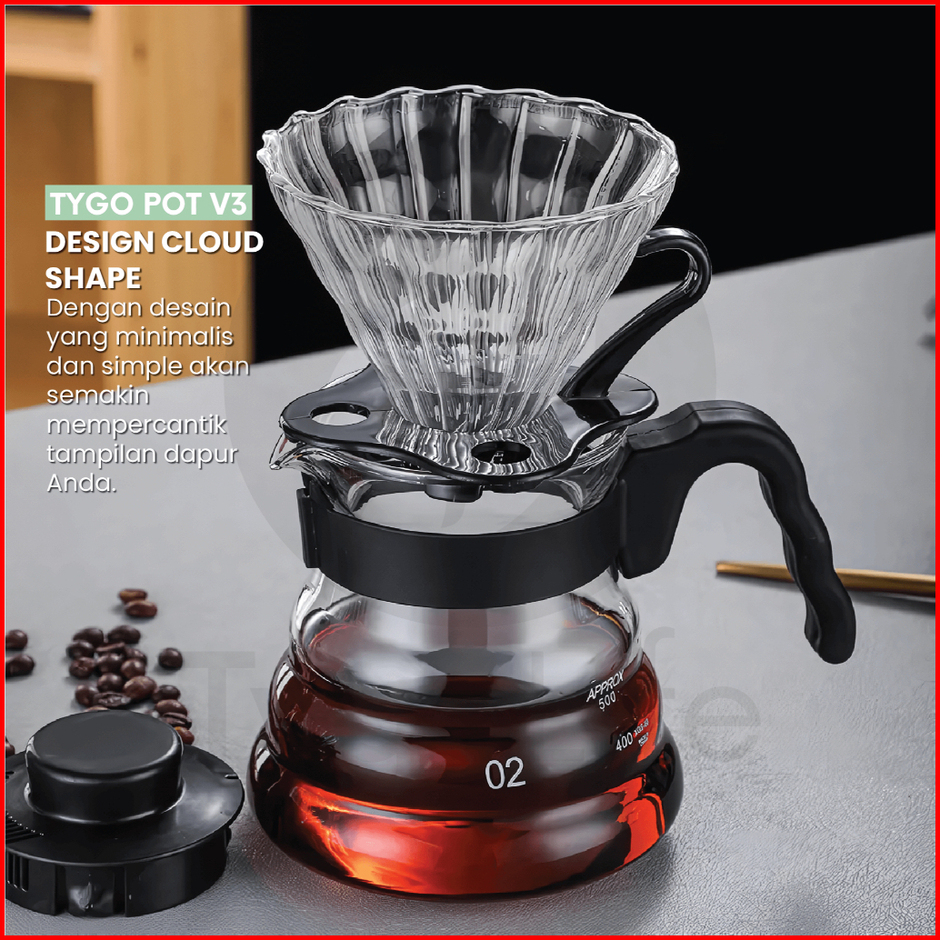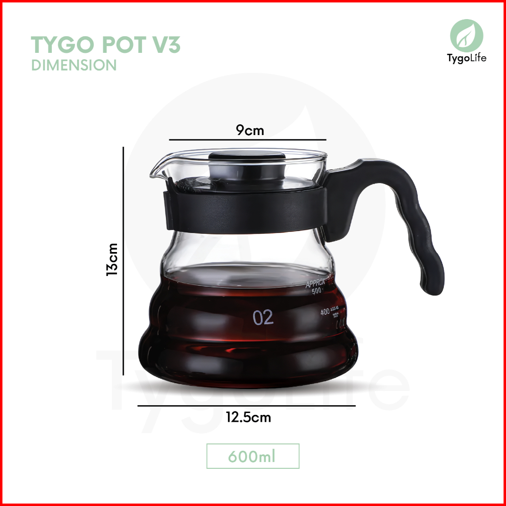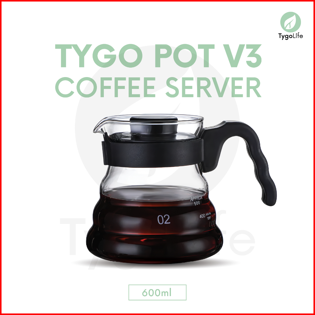Tygo Pot V3 Coffee Server Pour Over V60 Drip Borosilicate Glass Teko Tahan Panas Server Kopi Kaca 600ml Alat Seduh Manua