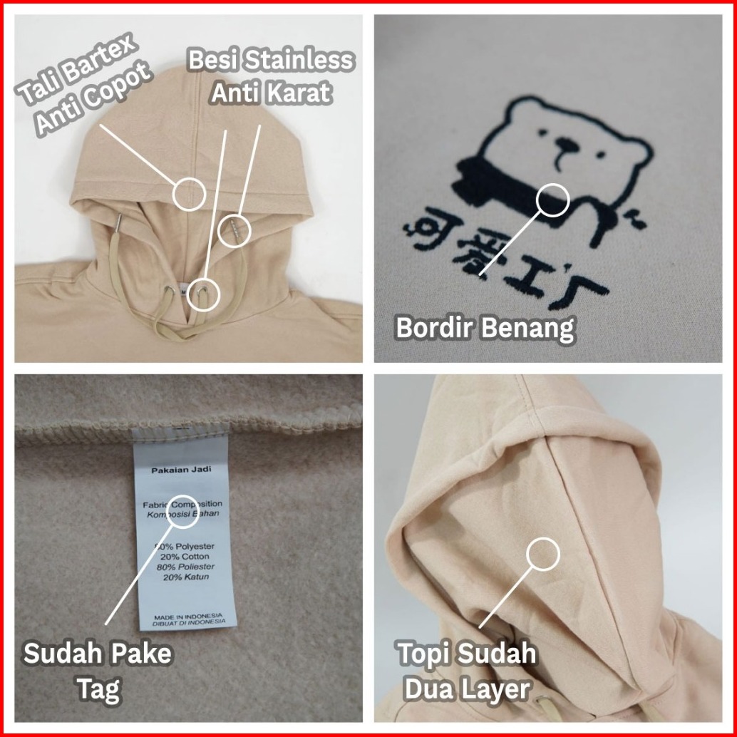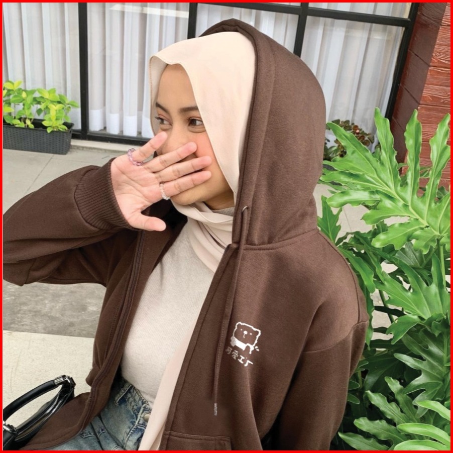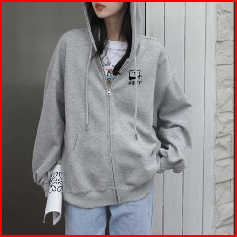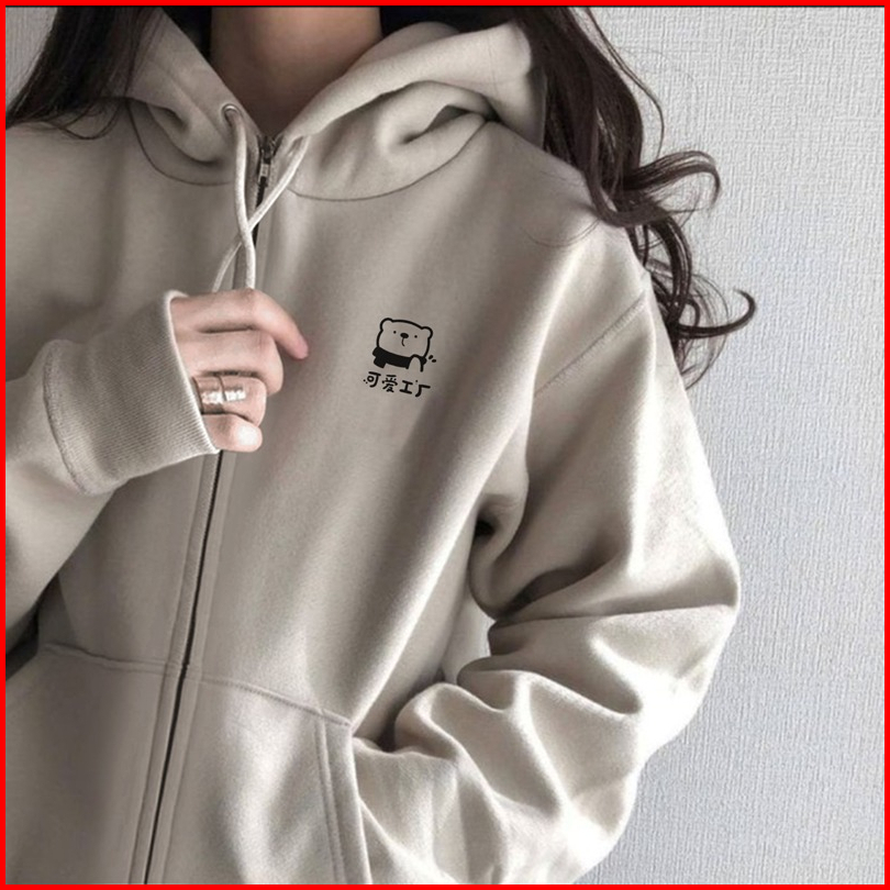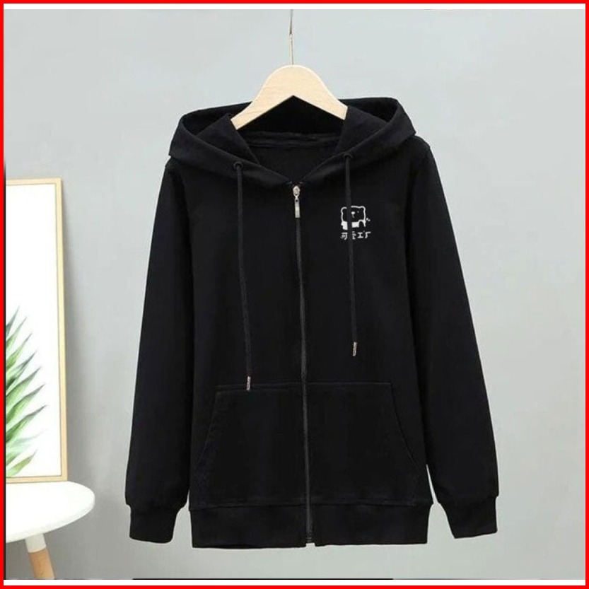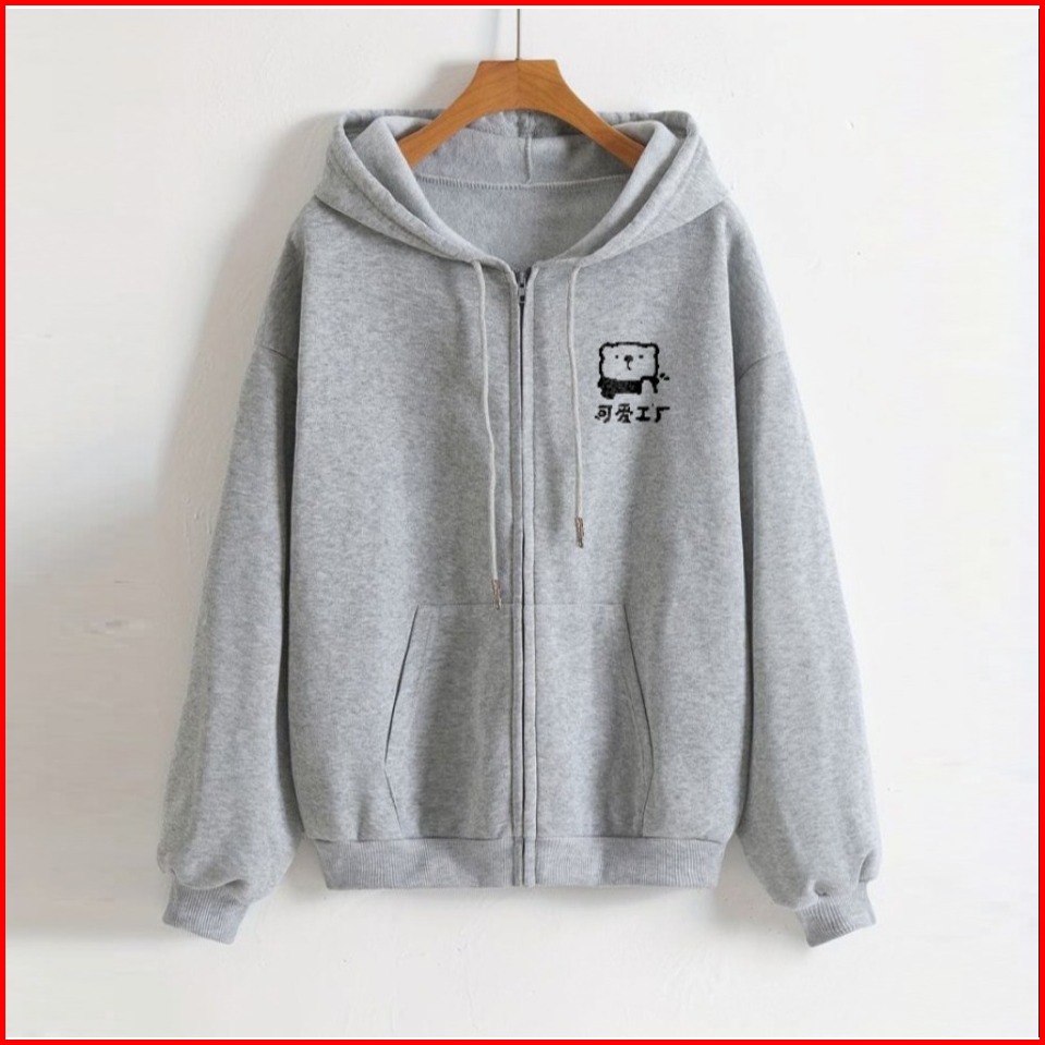 Parisdivarious Hoodie Zipper Cute Bear Bordir Size S - Xxl Pria Wanita