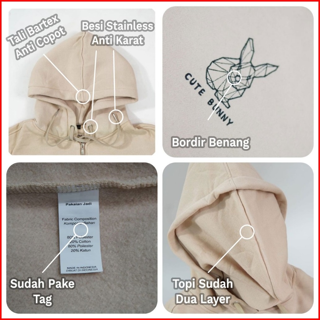 Parisdivarious Hoodie Zipper Cute Bunny Bordir Size S - Xxl Pria Wanita