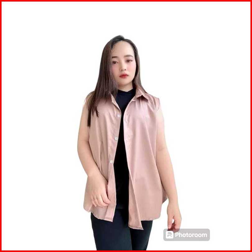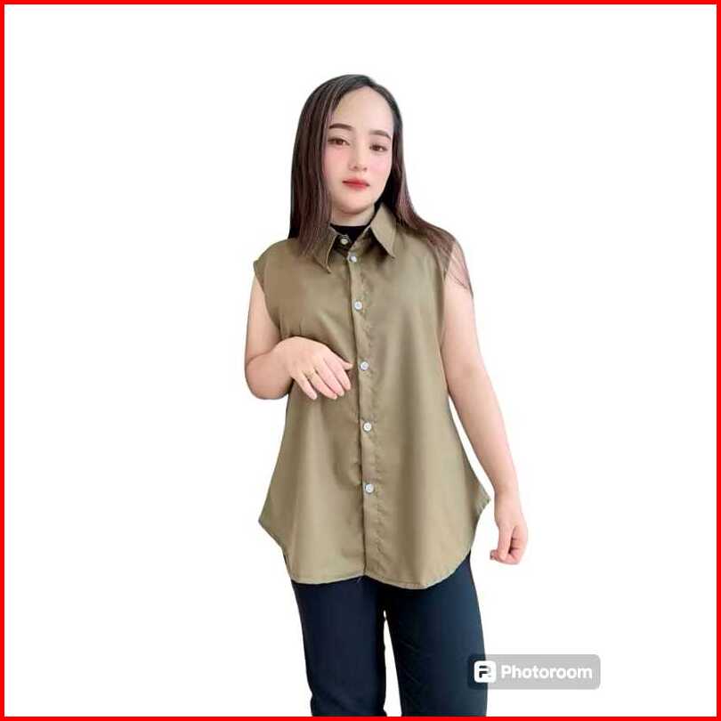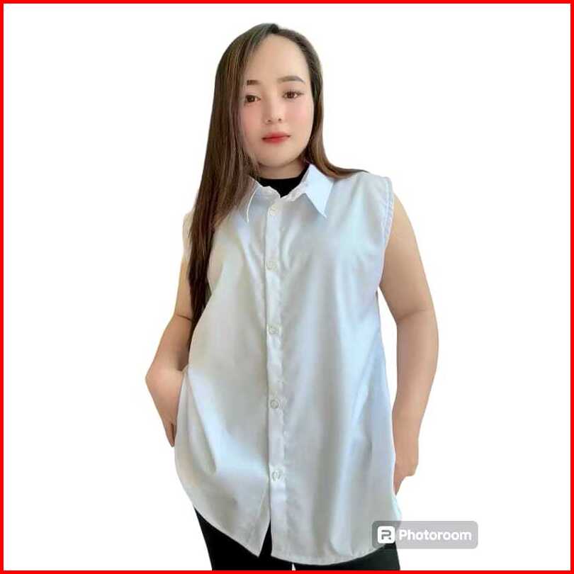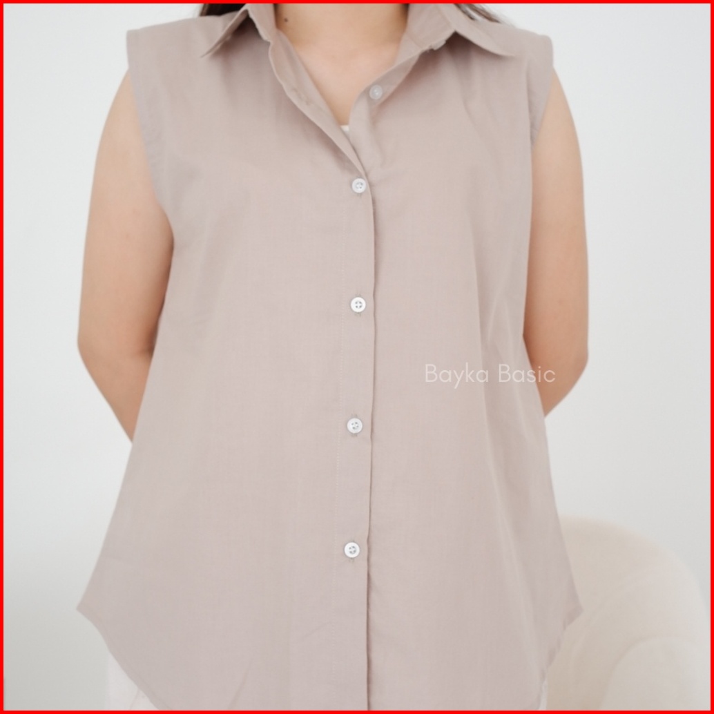Kemeja Wanita Tanpa Lengan Catton Toyobo Sleeveless Collar Shirt Cotton Inner Kemeja Kerah Atasan Kancing Depan Katun Bi