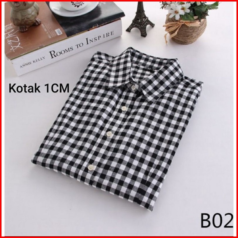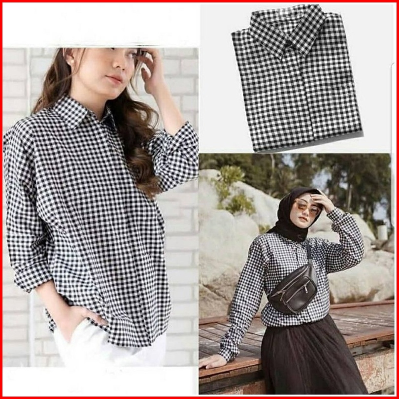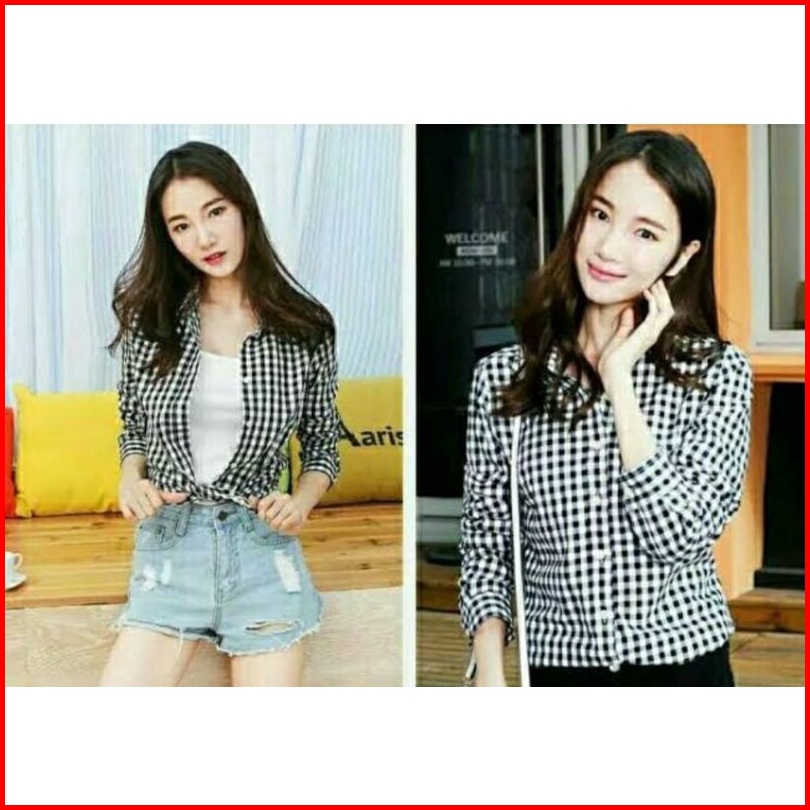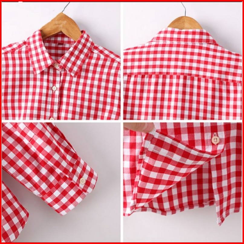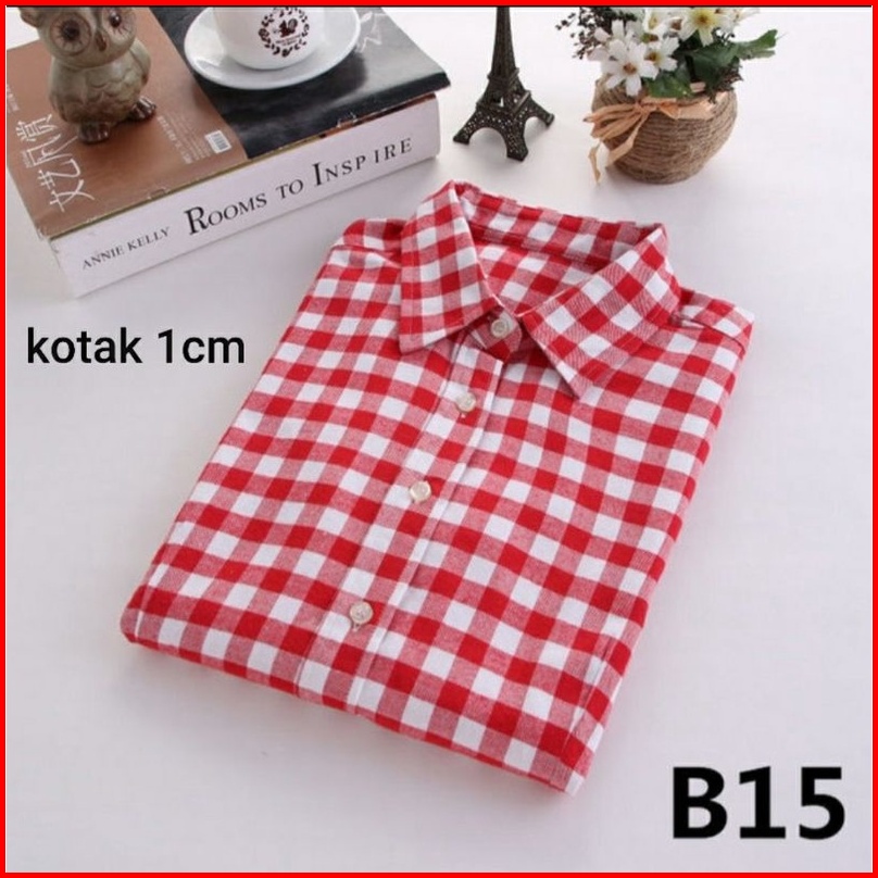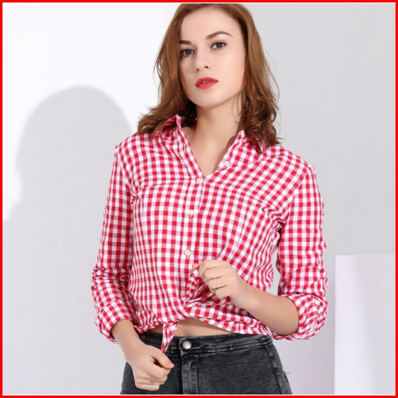 Gsl Kemeja Merah Putih Agustusan Wanita Kemerdekaan Kotak 1 Cm Lengan Panjang Basic Casual Korea Style Blouse Atasan Kot