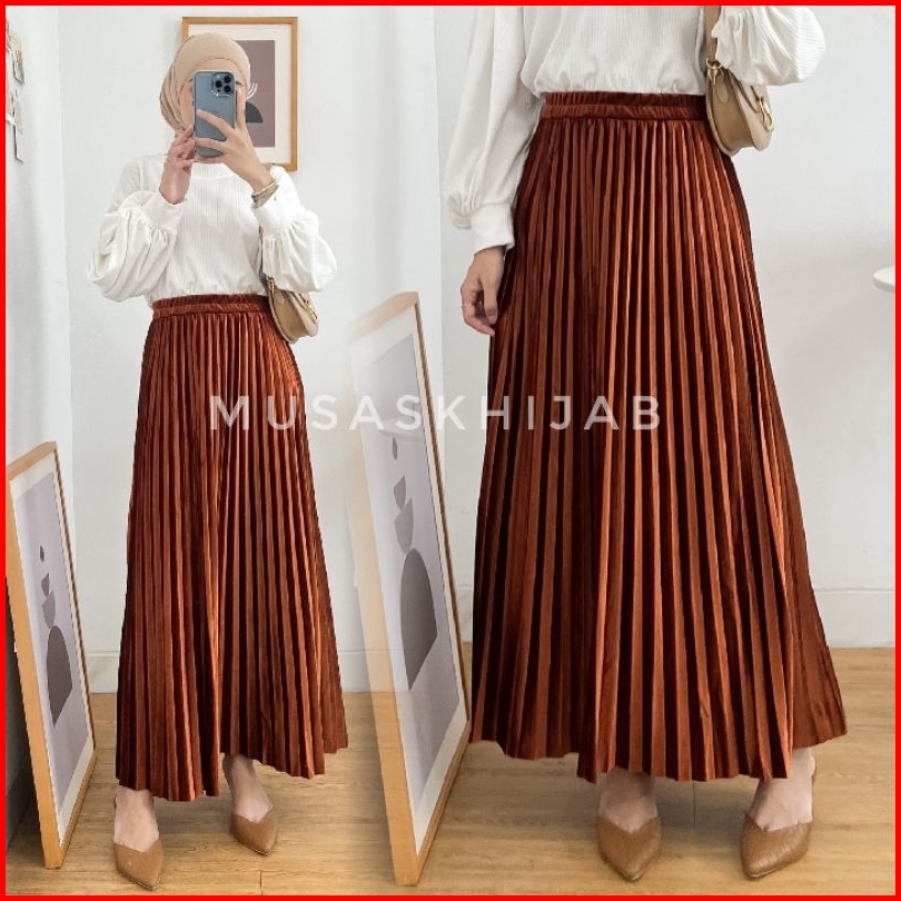 Rok Plisket Bludru Rok Velvet Rok Payung Bludru
