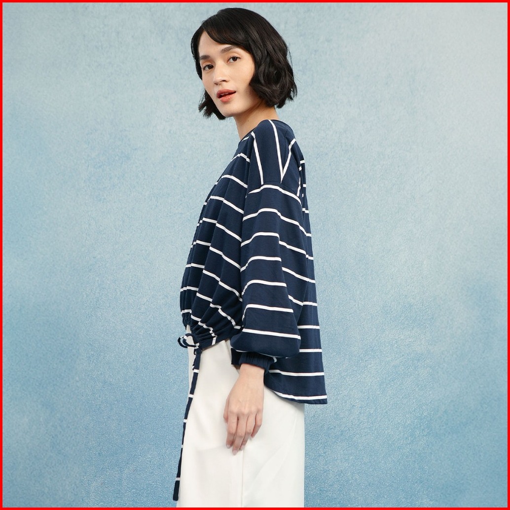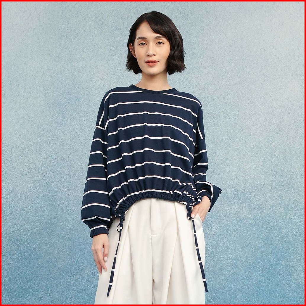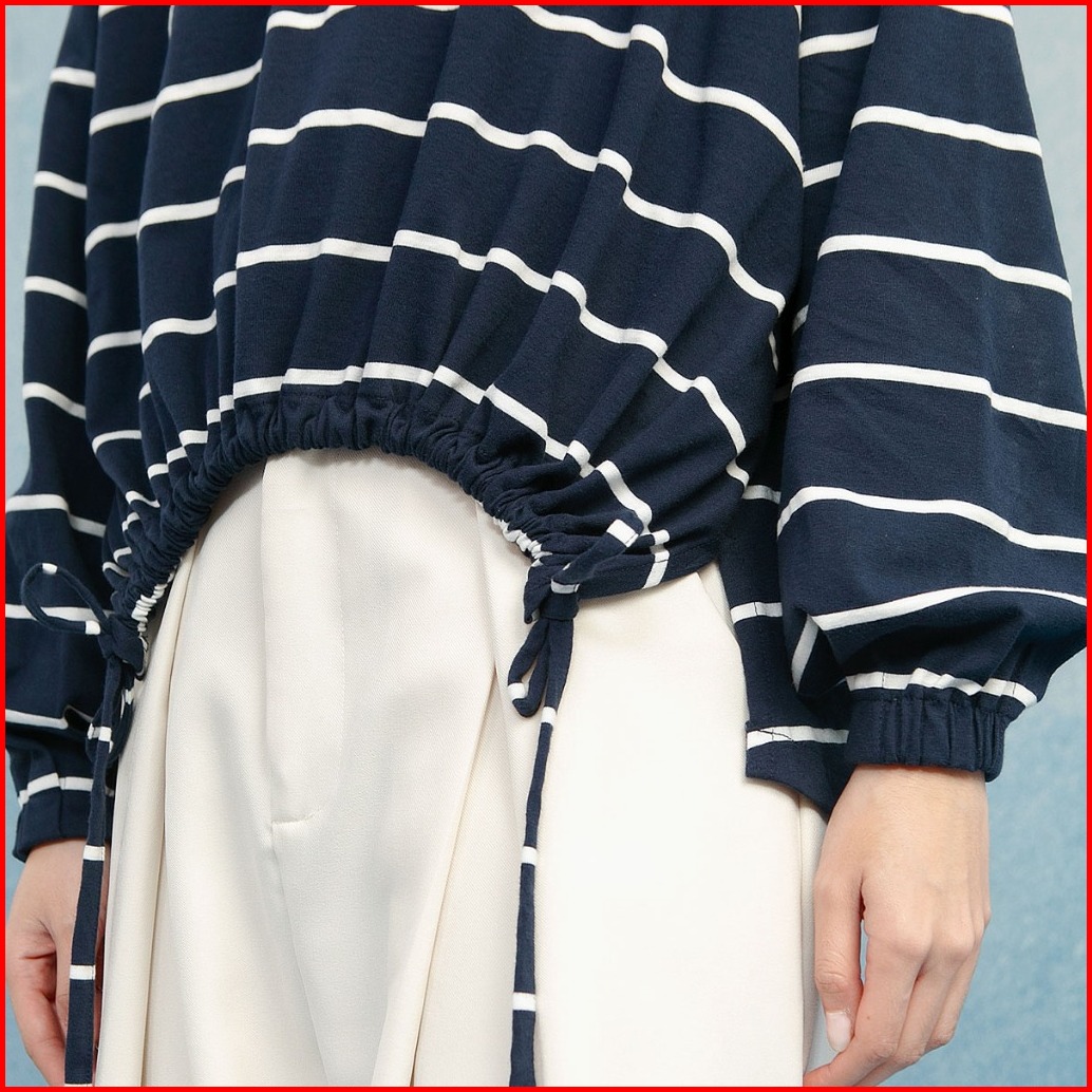 Hijabchic Blanca Navy Top - Blouse Stripe Cotton Combed Lembut Tali Serut
