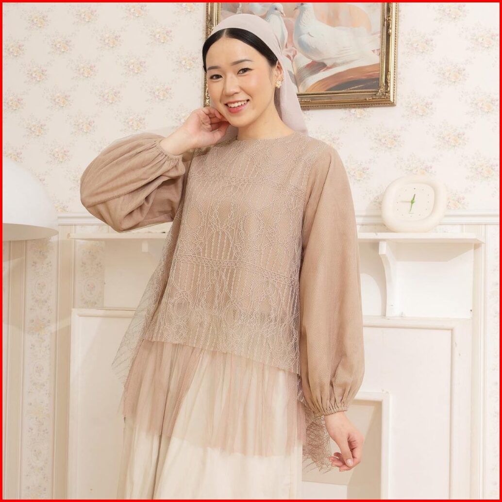 Hijabchic Syahita Mocca Tops - Blouse Brukat Kondangan Muslim Elegan