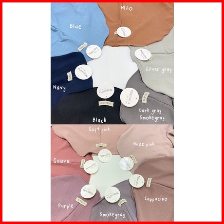 Black, Navy, Milo, Soft pink, Nude pink, Cappucino, Guava, Smoke gray, Purple, Dark gray, Blue, Silvergray