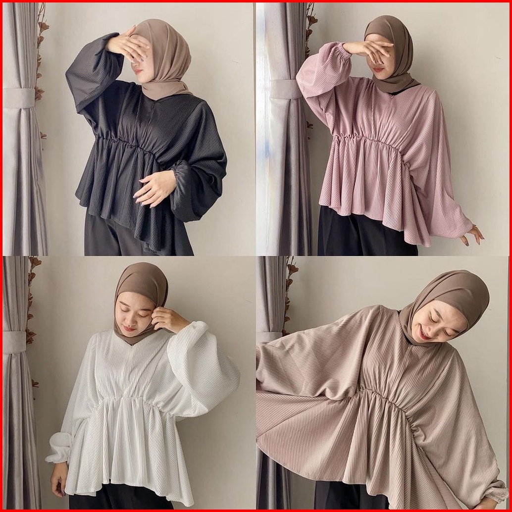 Syamaita Original Heira Pleats Blouse Busui Dan Wudhu Friendly Baju Putih Anti Terawang
