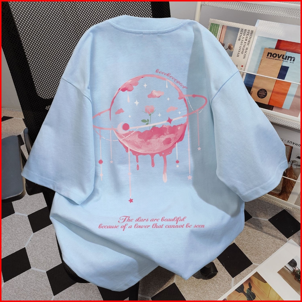 Forteid Biru Laut T-shirt Lengan Pendek Baju Kaos Oversize Wanita Baju Kaus Wanita Korea Baju Atasan Wanita Terbaru Pola