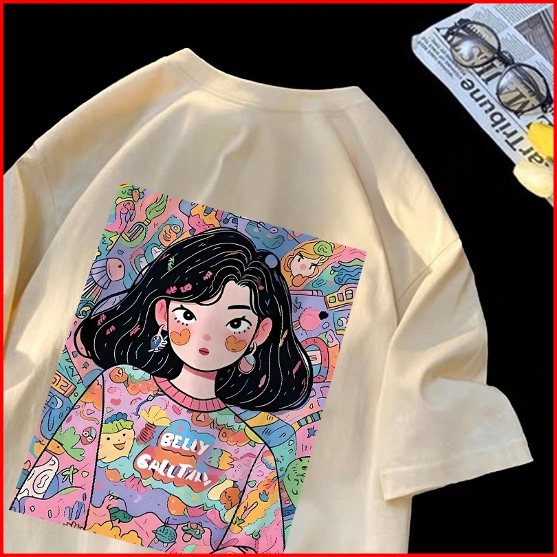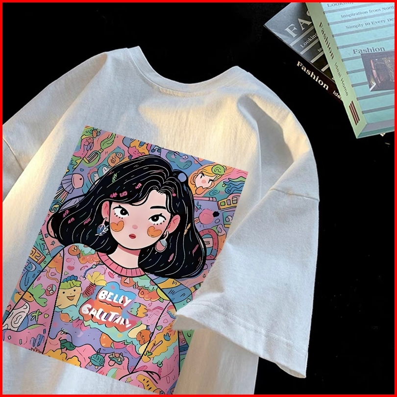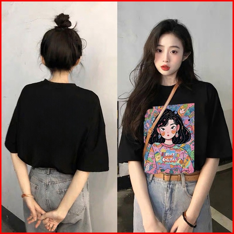 Forteid T-shirt Lengan Pendek Baju Kaos Oversize Wanita Baju Kaus Wanita Korea Baju Atasan Wanita Terbaru Graffiti Girl