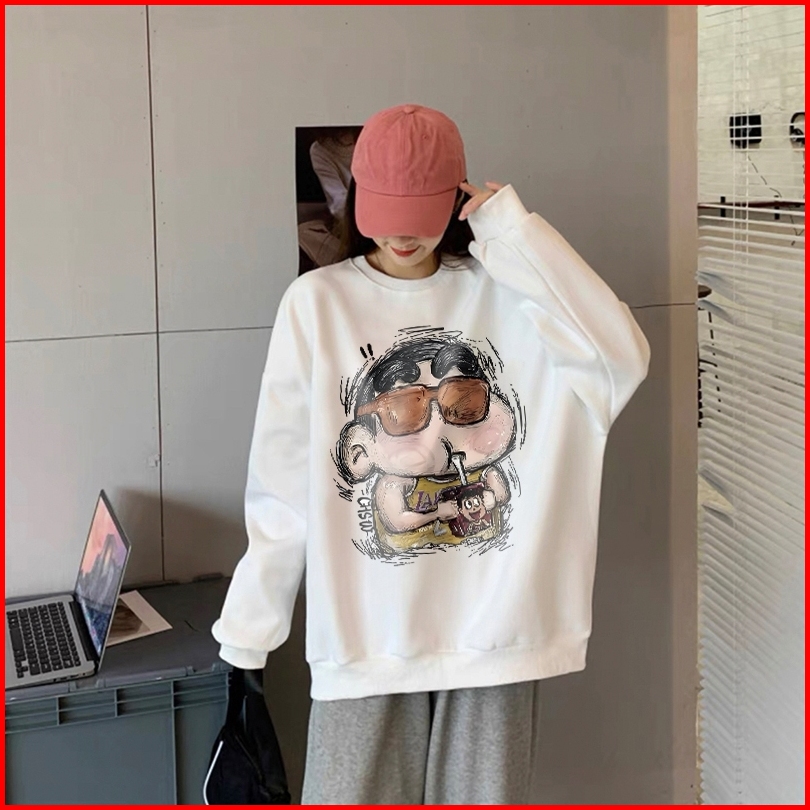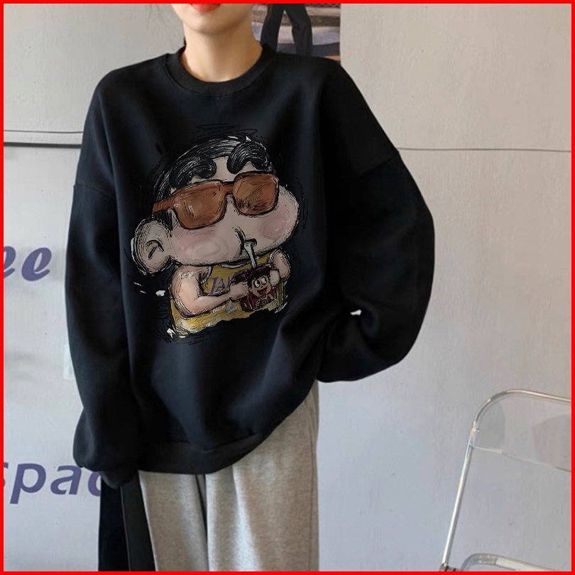Forteid Sweater Lengan Panjang Oversized Street Style Korean Style Switer Wanita Oversize Kaos Cetakan Pola Anak-anak Ko