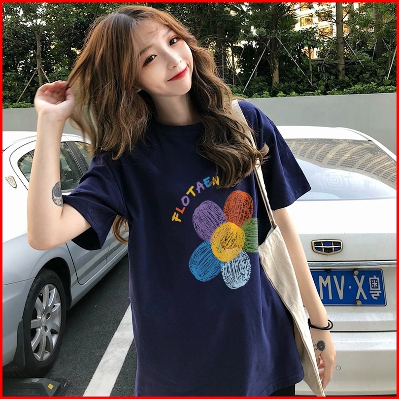 Forteid Biru Laut T-shirt Lengan Pendek Baju Kaos Oversize Wanita Baju Kaus Wanita Korea Baju Atasan Wanita Terbaru Ceta