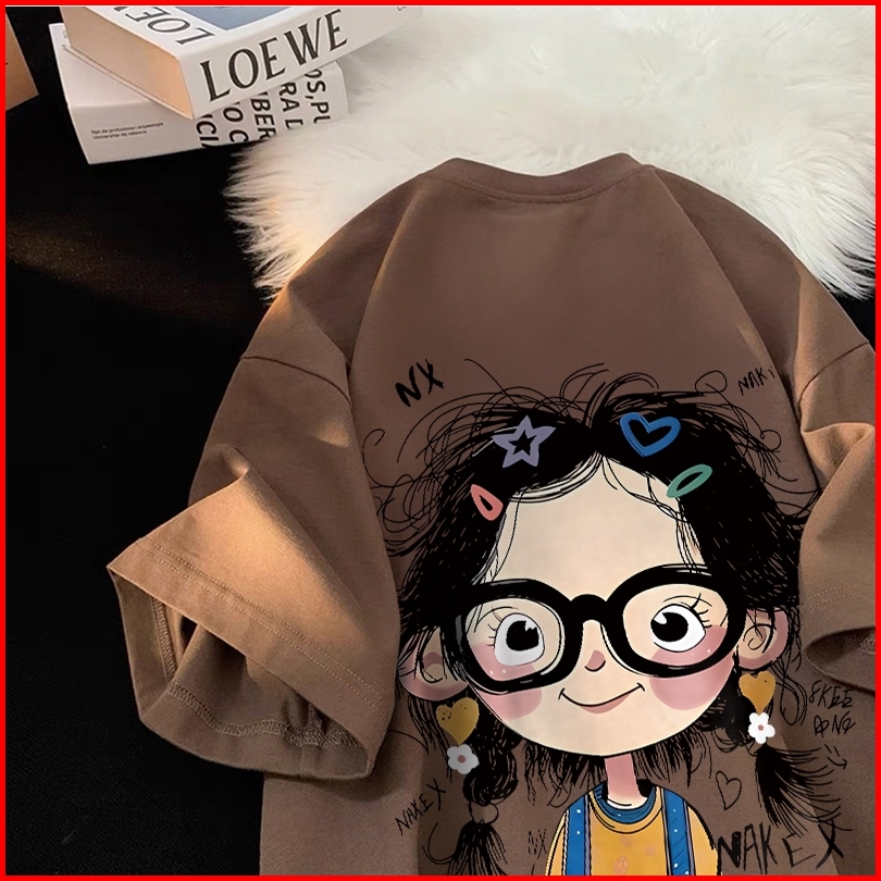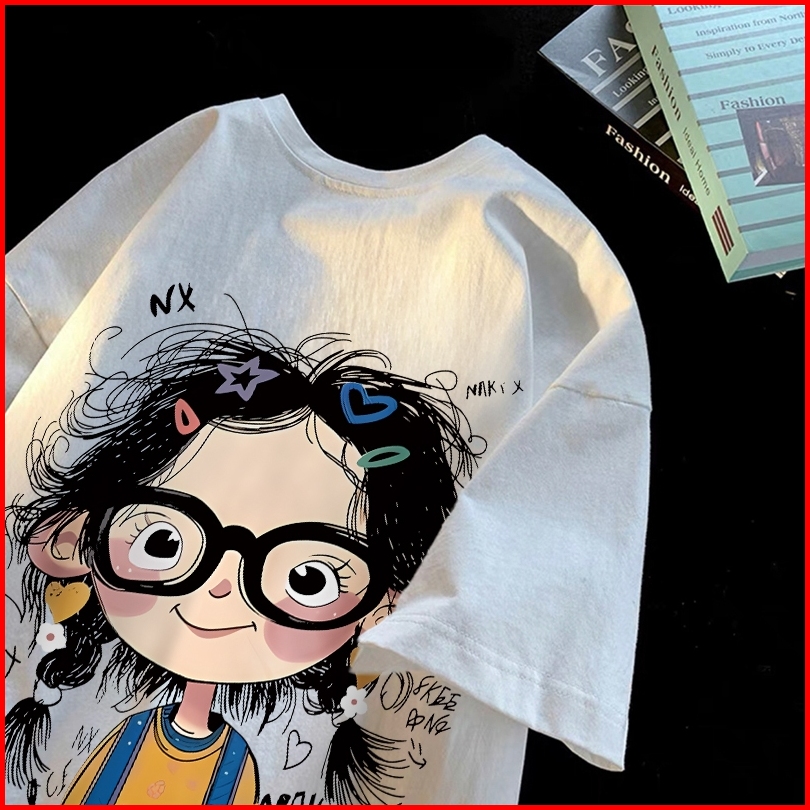 Forteid T-shirt Short Sleeve Baju Kaos Oversize Baju Korean Women S T-shirt Atasan Wanita Terbaru Pola Cetak Gambar Gadi