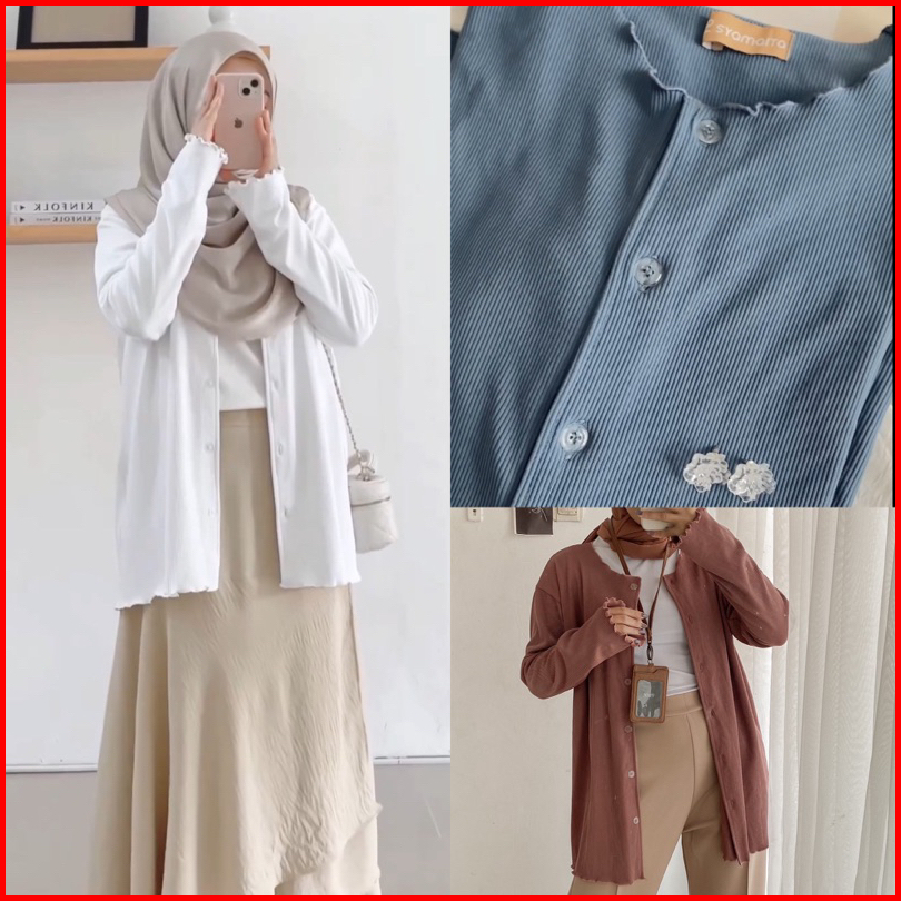 Syamaita Original Kirby Outer Material Knit Rib Gramasi 300 Premium Knitwear Wanita Panjang Kancing