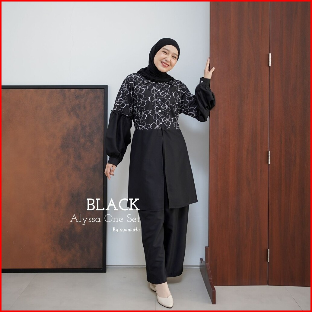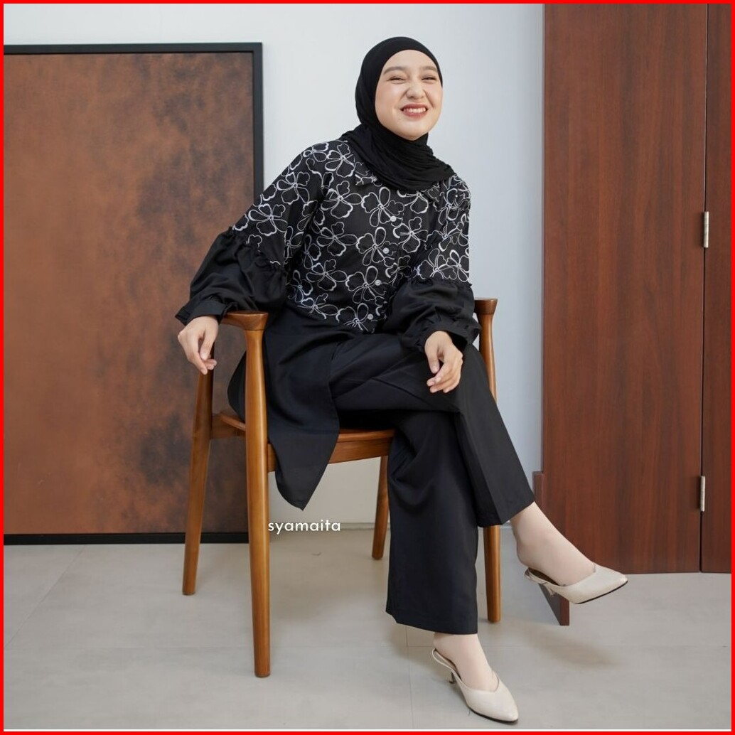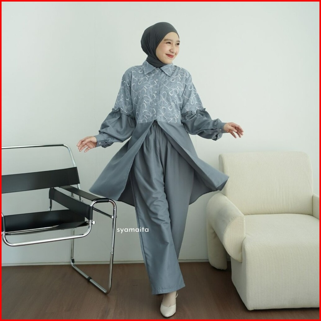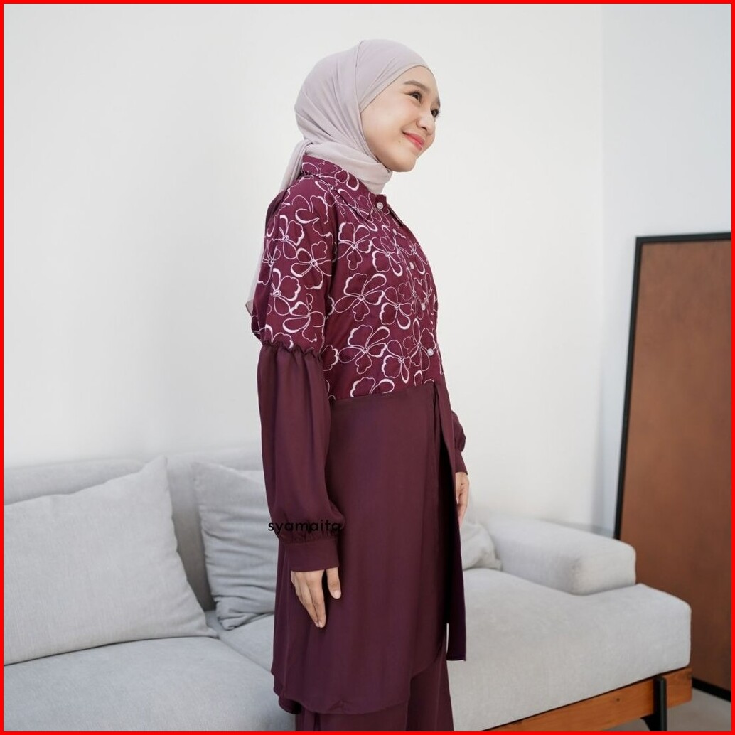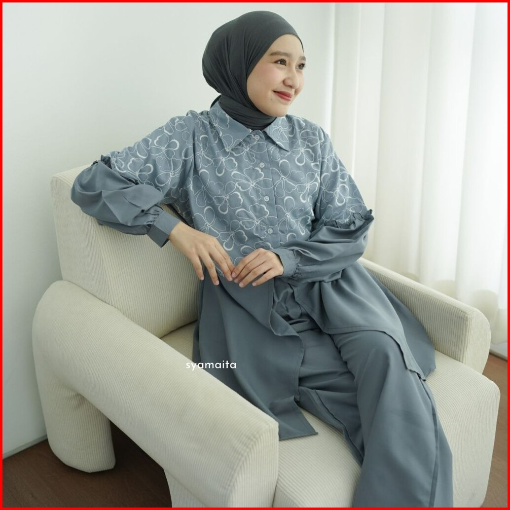 Syamaita Original Alyssa Tunik Set Celana Bordir Katun Adem Oversize