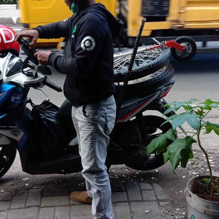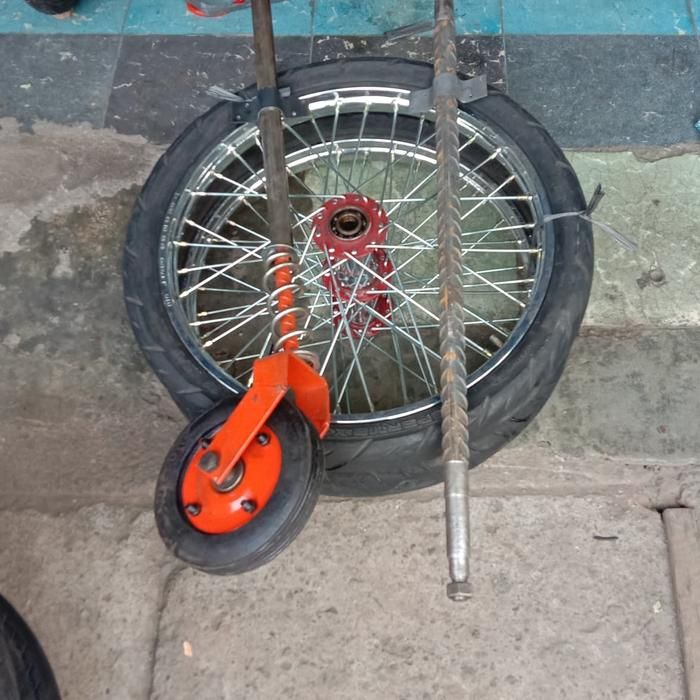 roda gerobak ruji motor dan roda belakang gletrek merah