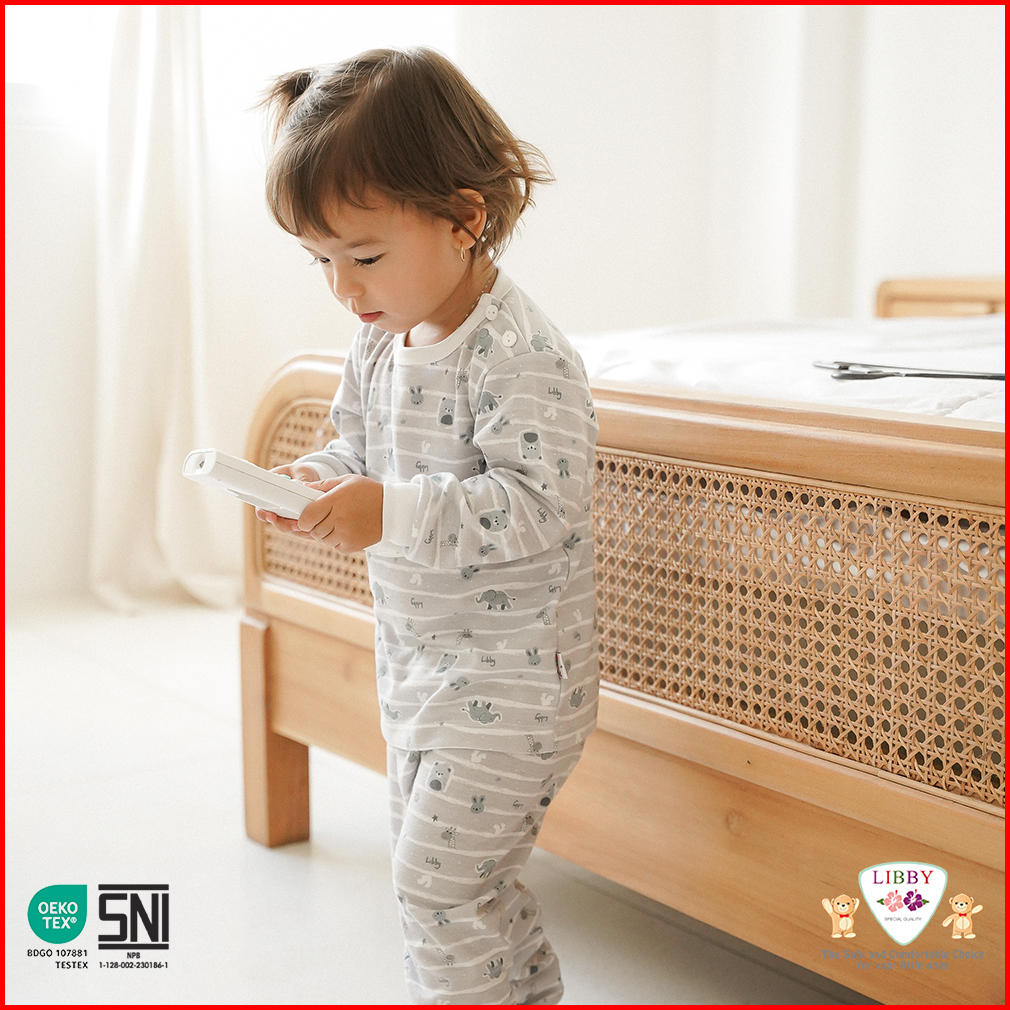 Libby Setelan Piyama Oblong Panjang Anak Laki - Laki Perempuan Motif Timeless Collection 1 Stel