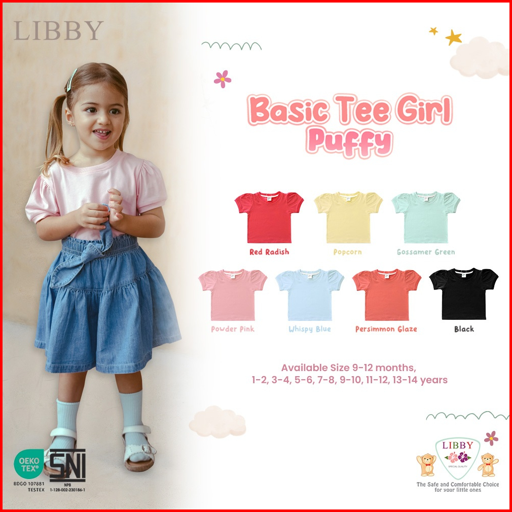 Libby Earth Kaos Atasan Polos Katun Lengan Pendek Puffy Anak Perempuan 9 Bulan - 12 Tahun Basic Tee Puffy 1pcs - Kaos An